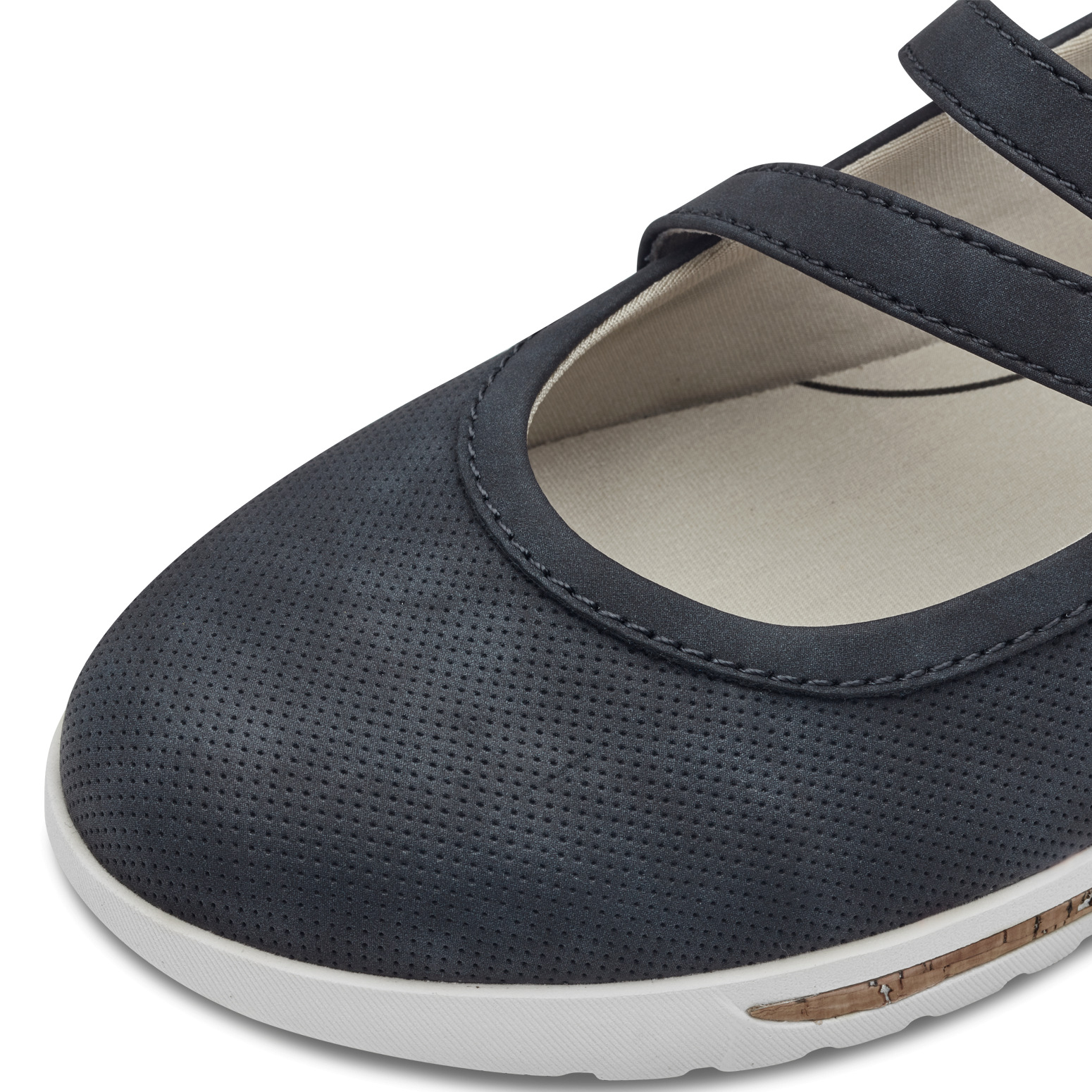 Jemně perforovaný svršek z kvalitní syntetiky nejen skvěle dýchá, ale zároveň dodává obuvi moderní vzhled. Pásek na suchý zip přes nárt poskytuje bezpečné a pohodlné upevnění, takže boty perfektně sednou na nohu a zaručí vám pocit jistoty při každém kroku. Nízký klínek přidává balerínám jemnou eleganci, aniž by ubíral na pohodlí.