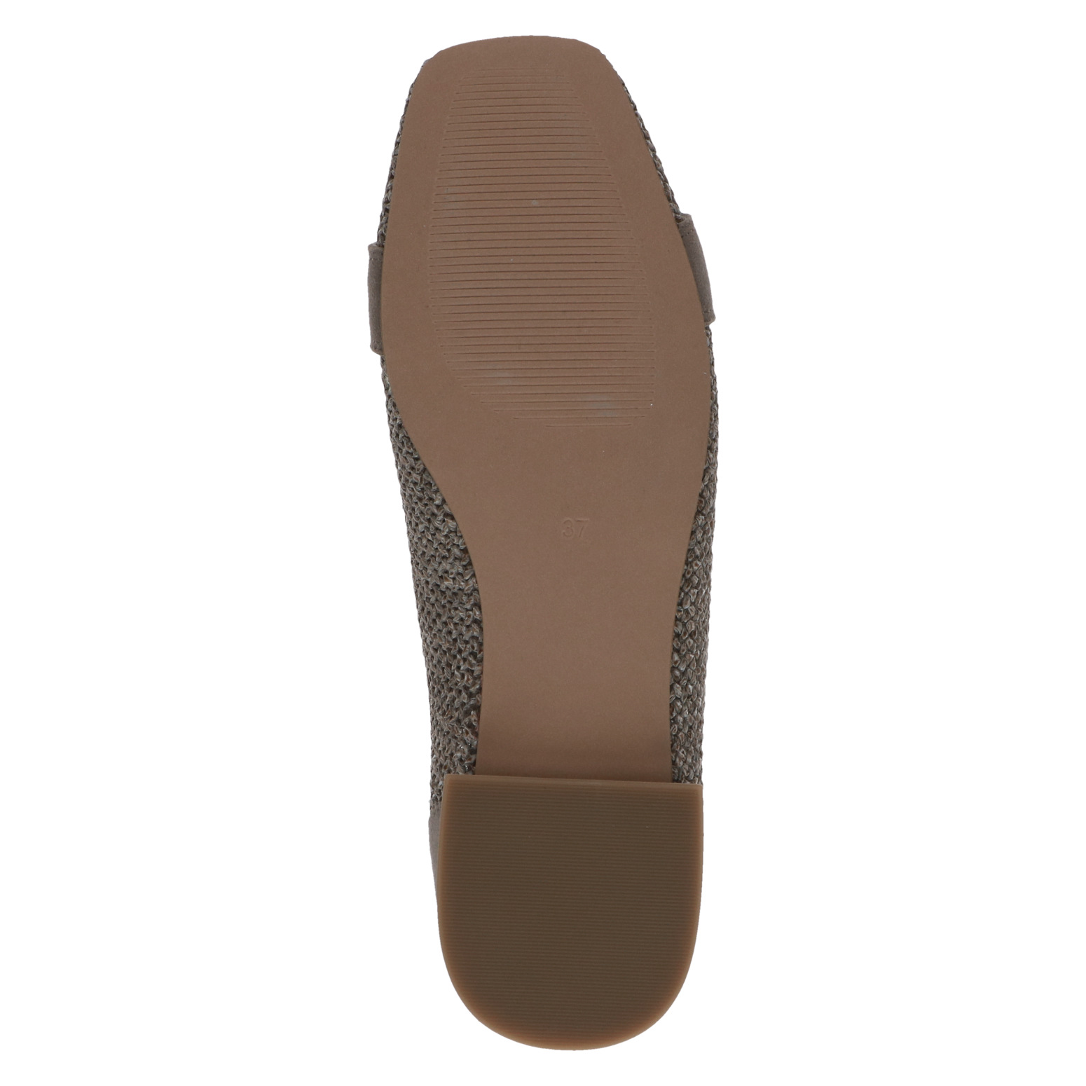 Svršek z textilního materiálu s efektem jemného tkaní je doplněn hladkými detaily, které dodávají obuvi sofistikovaný a nadčasový vzhled. Decentní ozdobná spona ve zlatém tónu přes nárt podtrhuje elegantní charakter balerín a dodává jim šmrnc. Nazouvací provedení zajišťuje rychlé a pohodlné obutí, ideální pro aktivní městské dny.