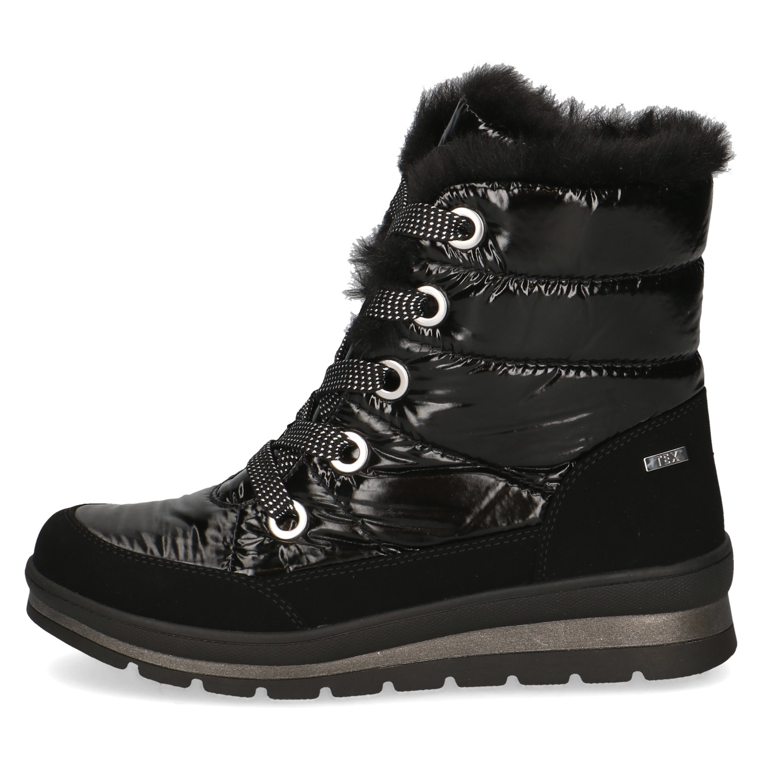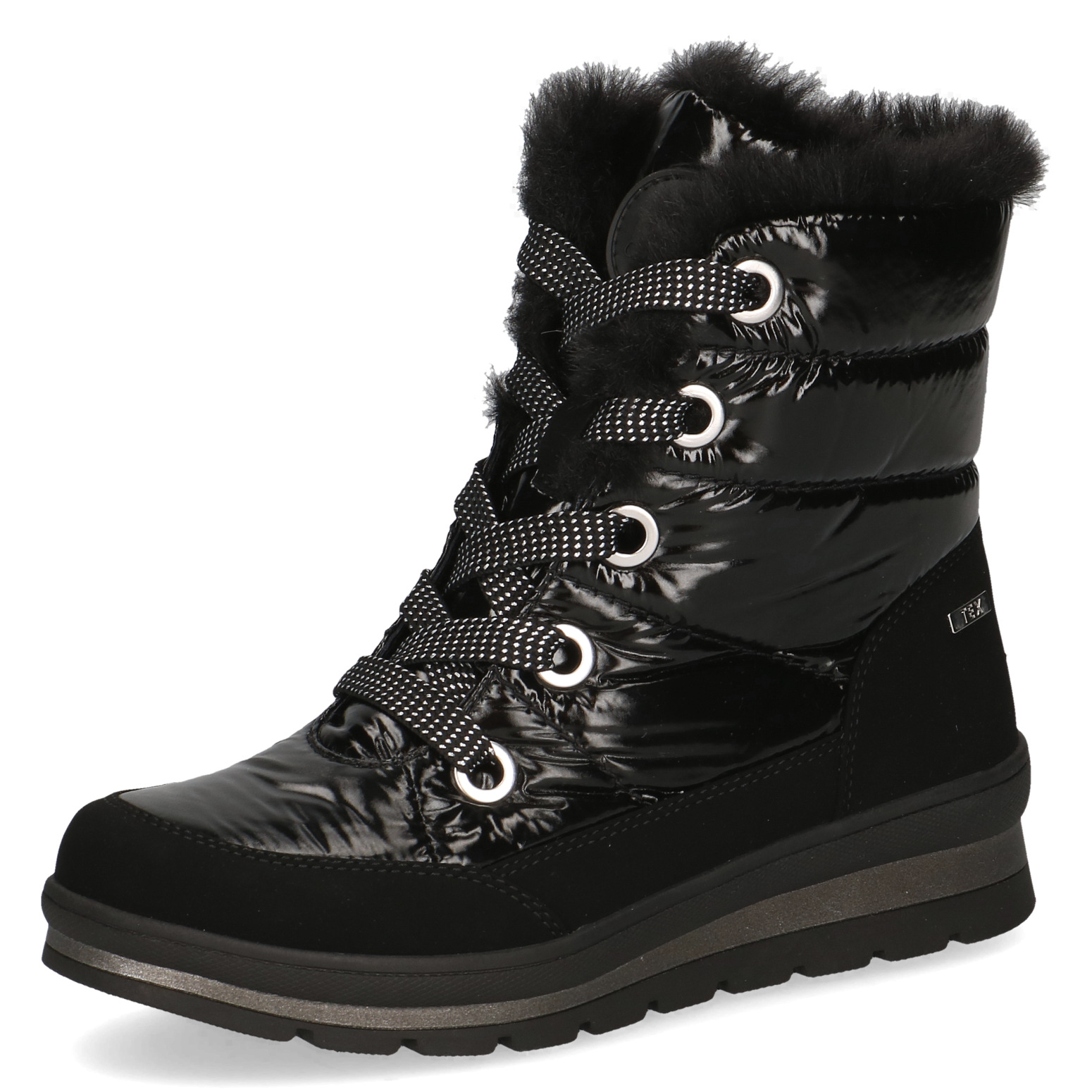 Dámské kotníkové boty Caprice 9-26226-41 019 v černé barvě jsou perfektní volbou pro chladné zimní dny. Tyto stylové sněhule nejen zaujmou svým moderním vzhledem, ale zároveň poskytují vynikající ochranu před nepříznivým počasím. Kombinace voděodolné TEX membrány a zateplené podšívky z hebké vlny zajistí, že vaše nohy zůstanou v suchu a teple po celý den, i v těch nejtěžších podmínkách.