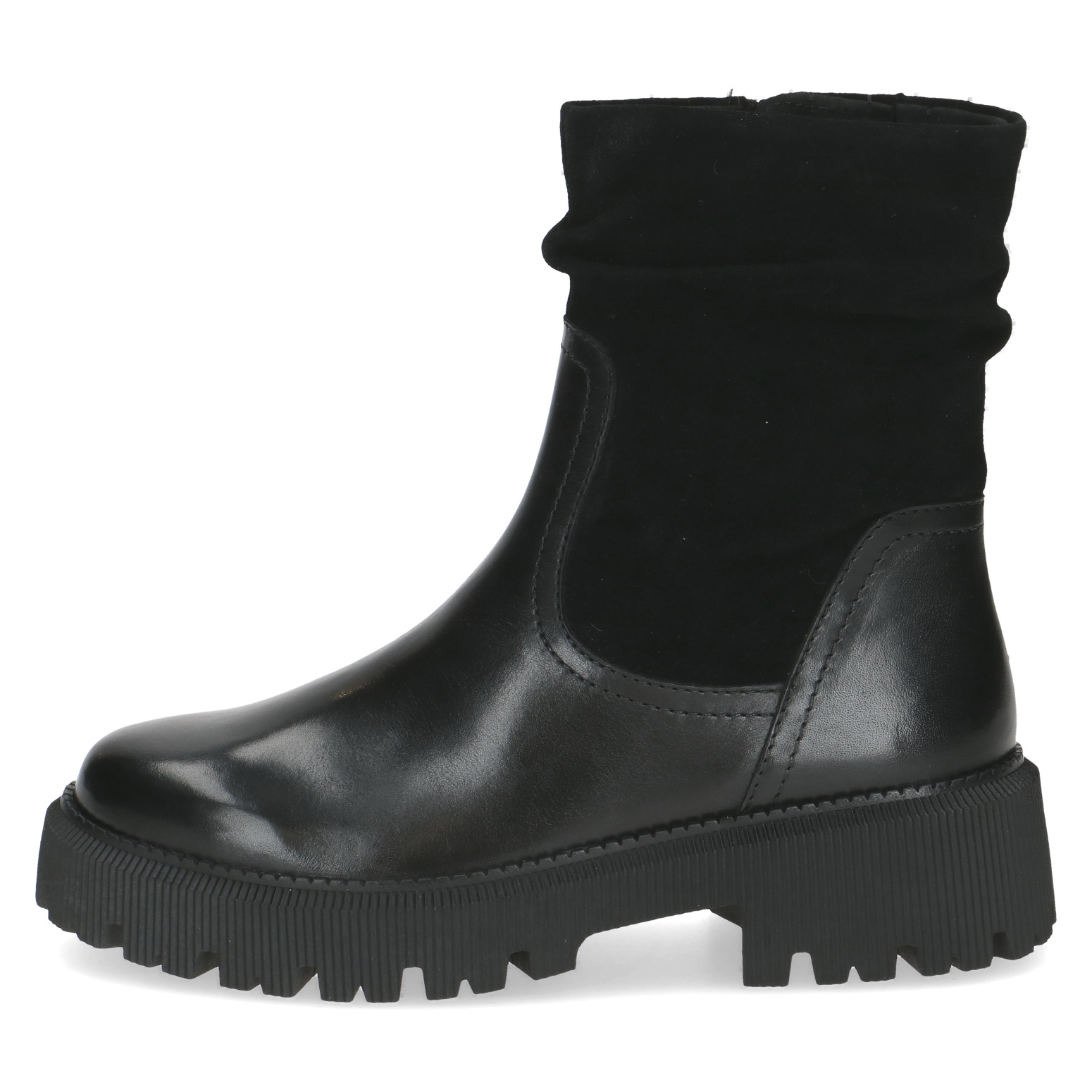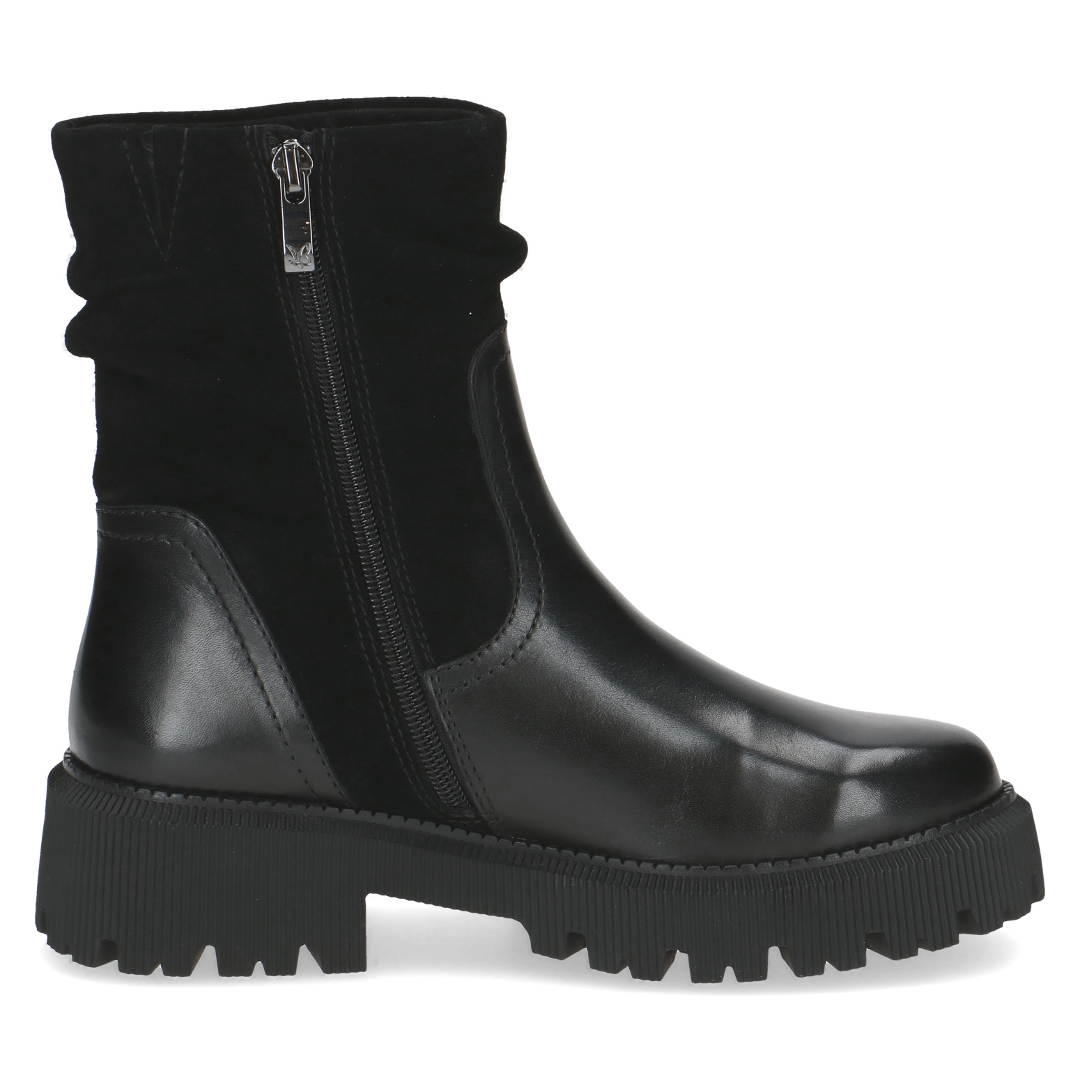 Svršek z kombinace hladké a broušené kůže působí luxusně a odolně, díky čemuž boty snadno zkombinujete s každým outfitem – od džínů po elegantní kabát. Postranní zip umožňuje snadné obouvání, zatímco decentní švy a jemný lesk dodávají modelu nadčasový charakter.