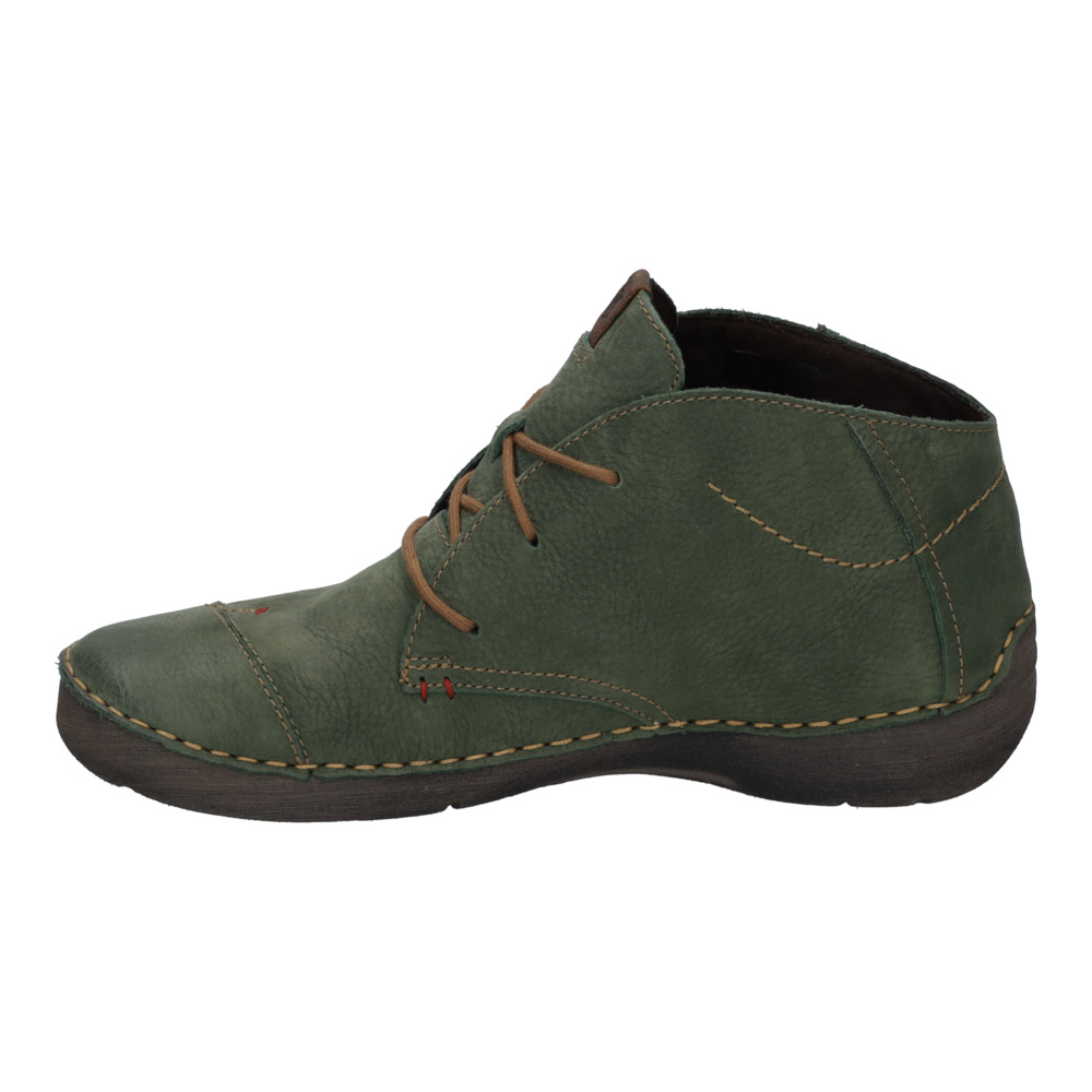 Dámské kotníkové boty Josef Seibel 59690 MI796 v zelené barvě jsou perfektní volbou pro podzimní dny. Svršek z vysoce kvalitní ekologicky zpracované kůže zajistí dlouhou životnost bot, zatímco jejich moderní design je nadčasový. Pohodlí při chůzi zaručuje flexibilní podešev, která se přizpůsobuje každému vašemu kroku, a vyměkčená stélka s tlumením nárazů vám poskytne pocit lehkosti po celý den. Díky prostorné špičce a lehkému zateplení jsou tyto boty skvělou volbou nejen pro běžné nošení, ale i pro procházky v chladnějším počasí.