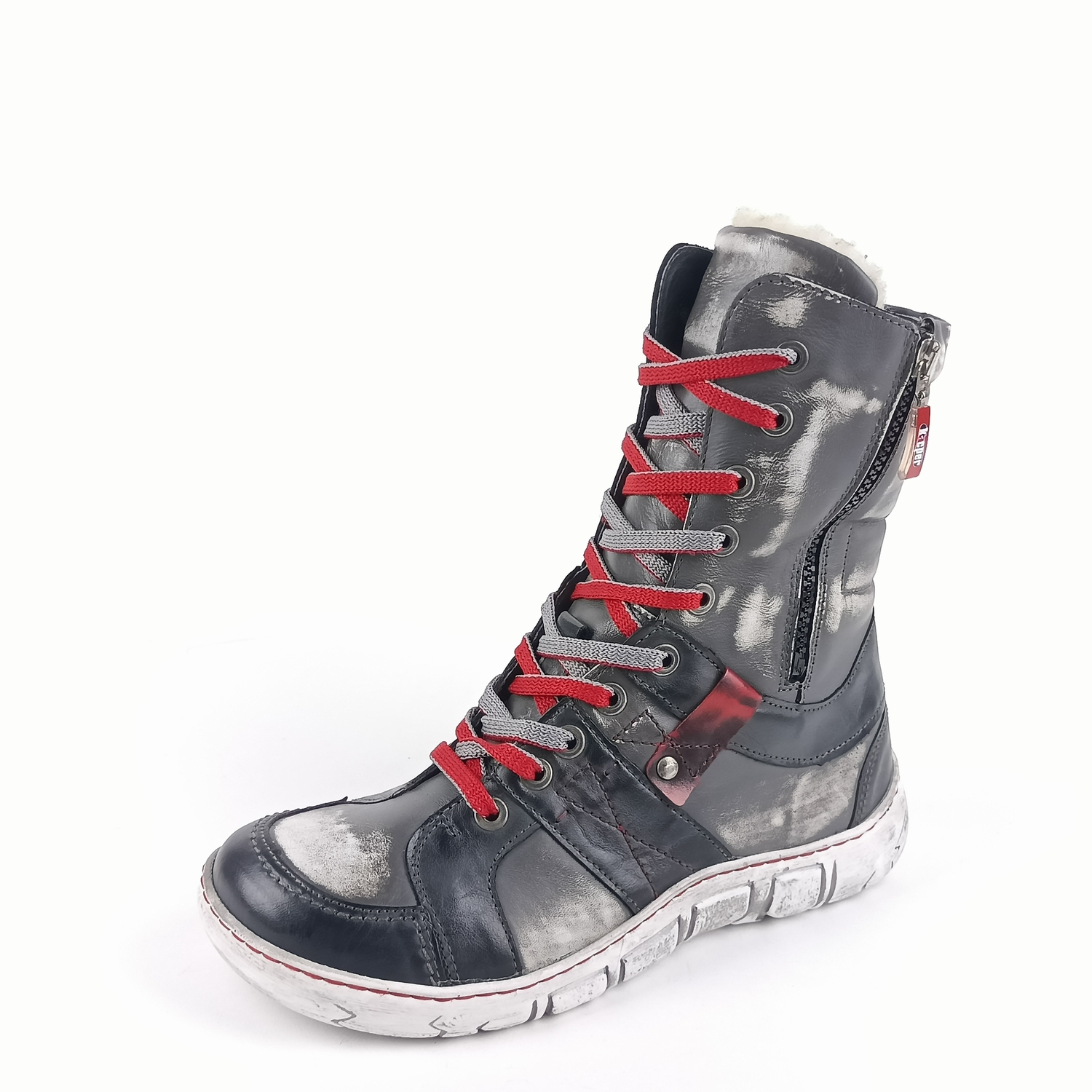 Dámské kotníkové boty Kacper 4-0238 v šedé barvě jsou ideální volbou pro ženy, které hledají pohodlí, styl a teplo v jednom. Díky prémiovému koženému svršku, zateplenému vnitřku s ovčí střiží a širokému střihu H vám boty poskytnou maximální komfort i v chladném počasí. Šněrování doplněné o dva zipy zajišťuje jednoduché obouvání a možnost snadného přizpůsobení přímo na nohu.
