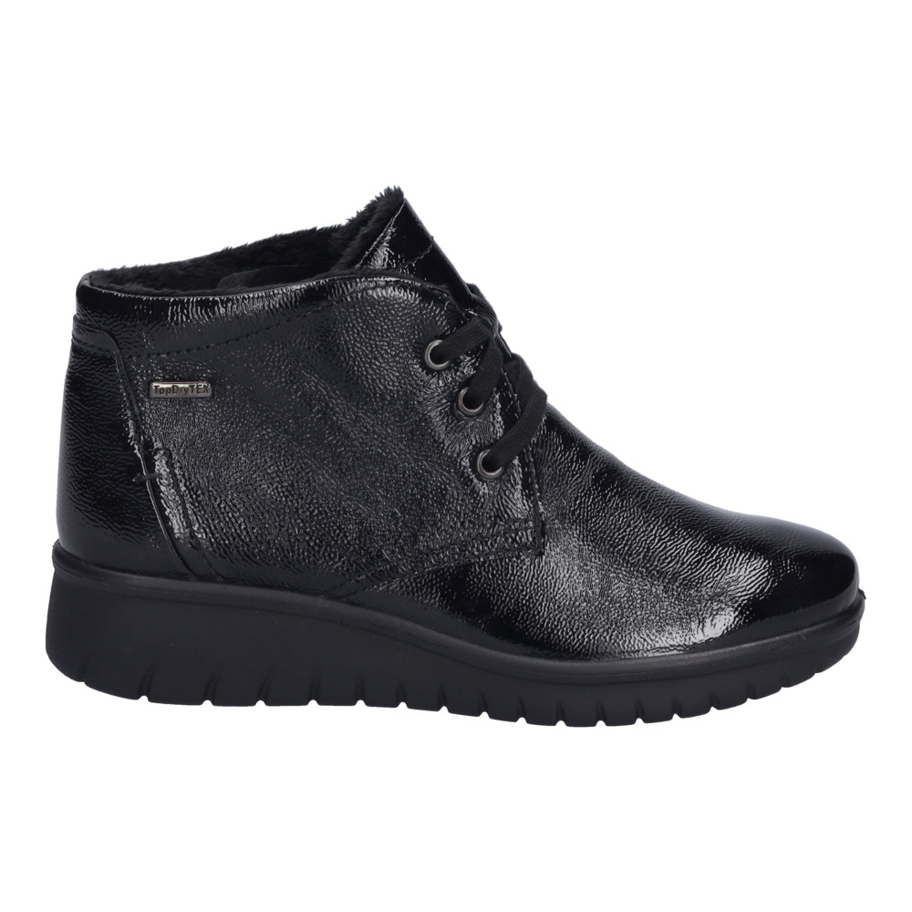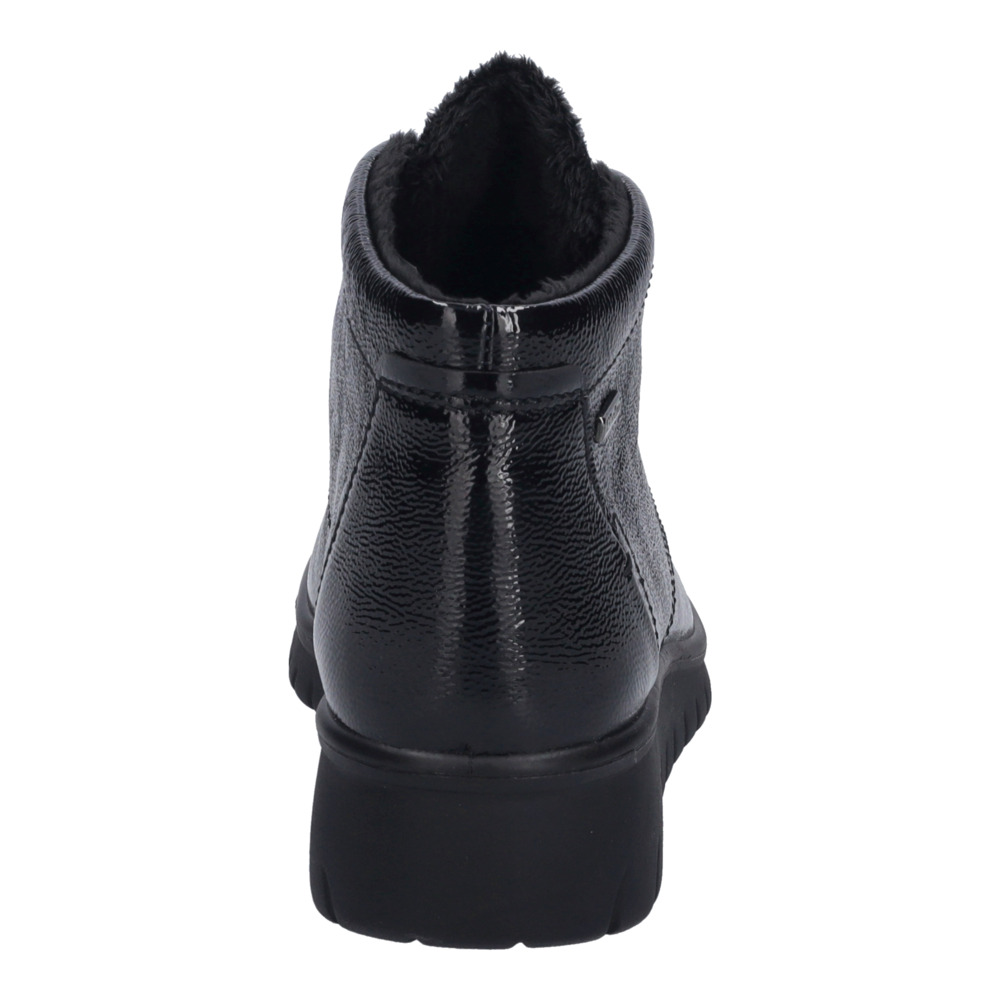 Svršek je vyroben z kvalitní lakované pravé kůže, která dodává botám luxusní vzhled a dlouhou životnost. Černá barva působí univerzálně a elegantně, takže se hodí jak k džínám, tak k zimním šatům či kabátu. O teplo během chladných dnů se postará hřejivá textilní podšívka, která příjemně obejme chodidlo.
