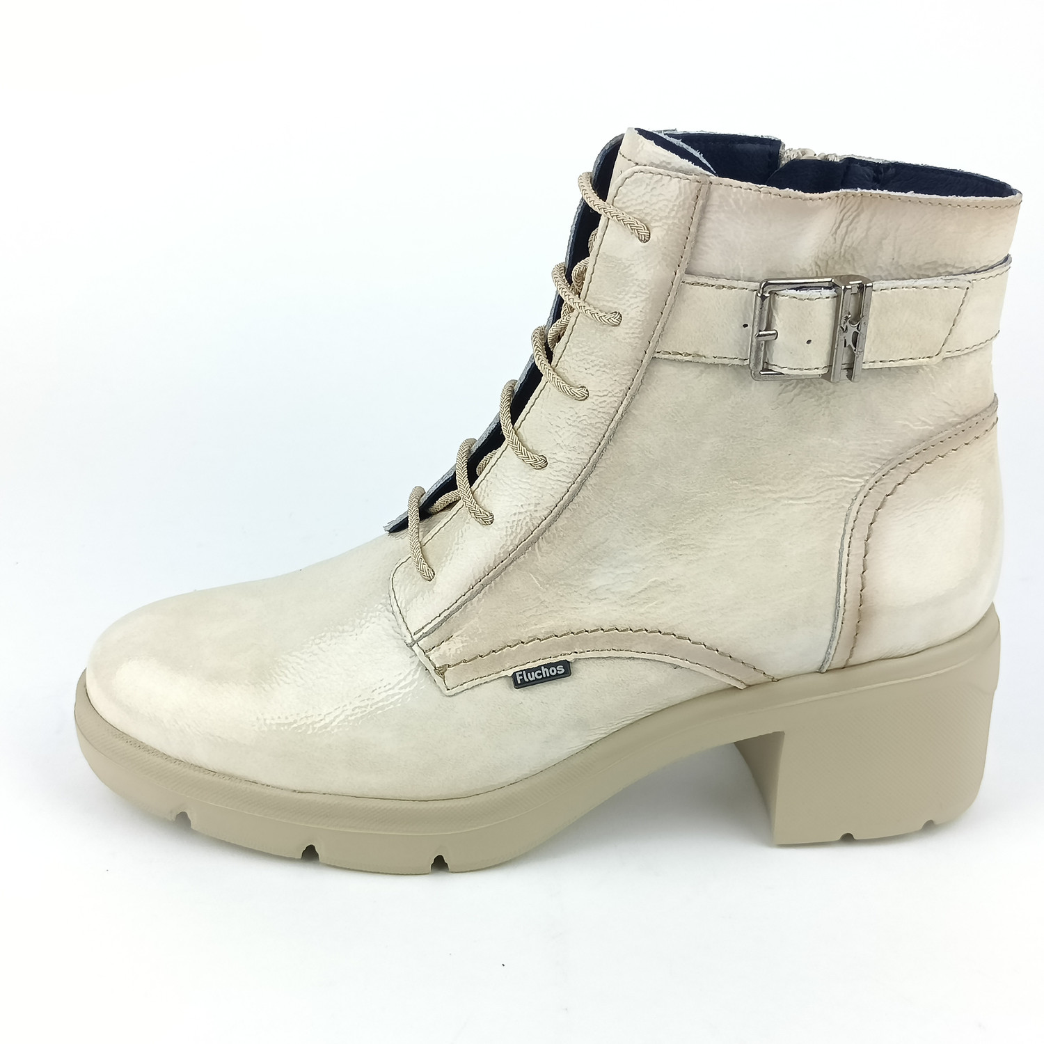 Dámské kotníkové boty na podpatku Fluchos F2107 béžové – styl, sebevědomí a pohodlí v jednom kroku. Model Fluchos F2107 je navržen pro ženy, které chtějí spojit aktuální módní trendy s absolutním komfortem. Elegantní béžový kožený svršek s jemným lakovým efektem působí luxusně a okamžitě upoutá pozornost. Tento design je perfektním doplňkem městských outfitů, ať už zvolíte džíny, šaty nebo elegantní kabát.