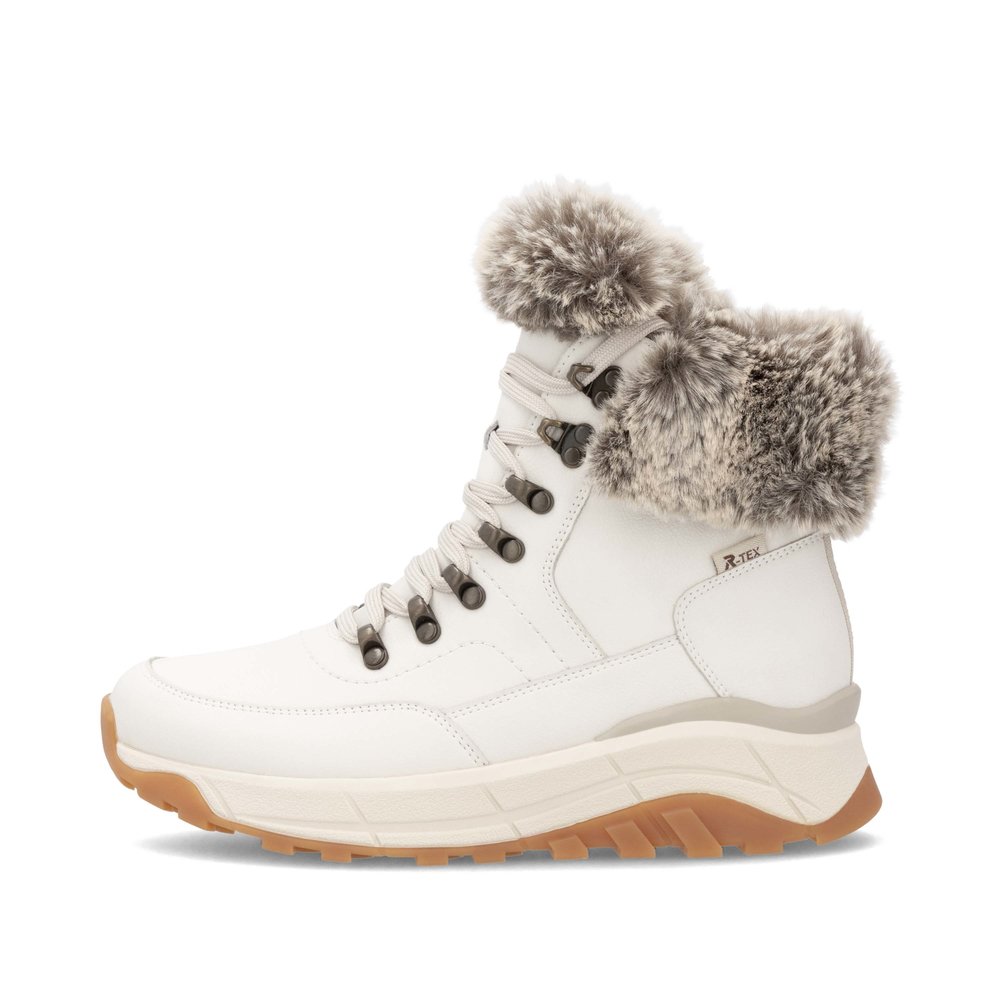 Dámské kotníkové boty Rieker W0063-80 bílé – zimní pohodlí, které si zamilujete na první krok. Vstupte do zimy s lehkostí, teplem a stylem, který nikdy nezklame. Tyto dámské kotníkové boty Rieker W0063-80 v jemné bílé barvě jsou dokonalým spojením funkčnosti a módního vzhledu. Hladká kožená svrchní část doplněná měkkým kožešinkovým lemem vytváří útulný zimní look, který působí hřejivě už na pohled – a po obutí vám dá zapravdu.