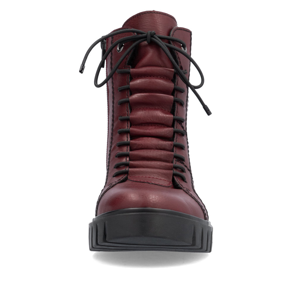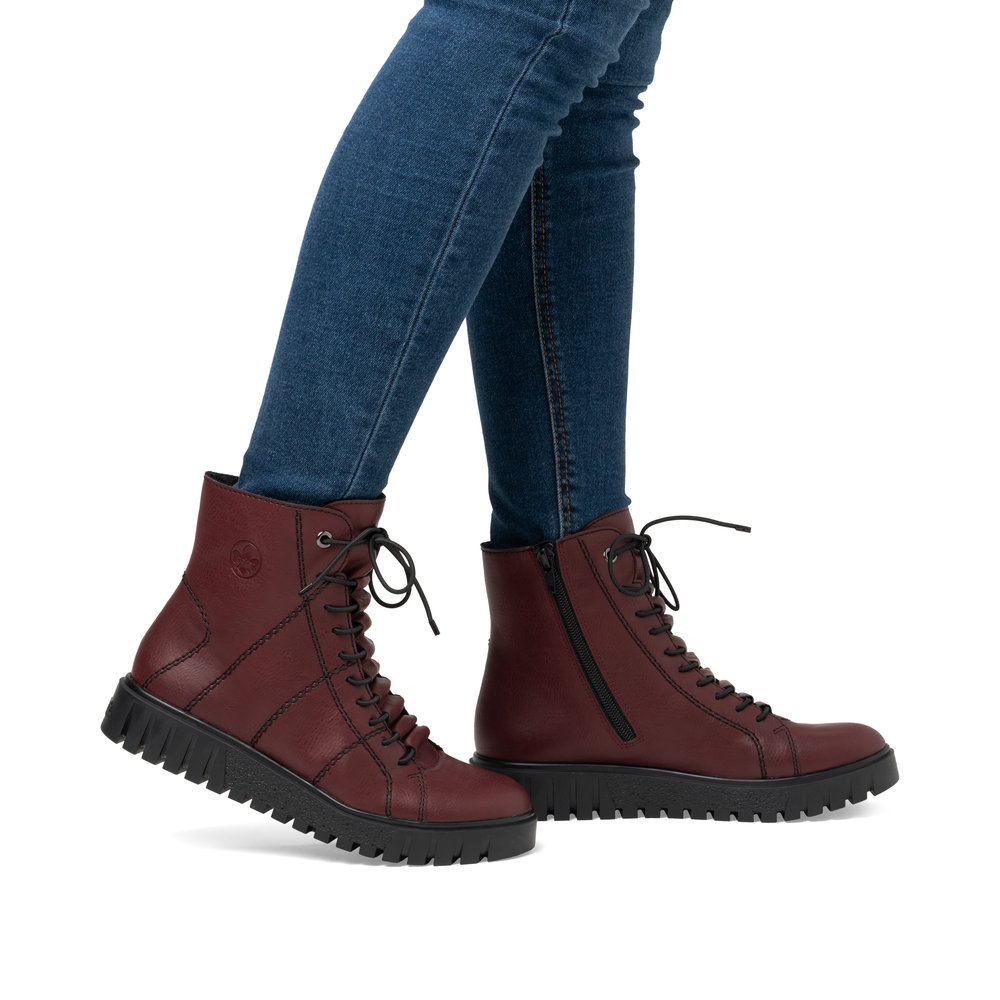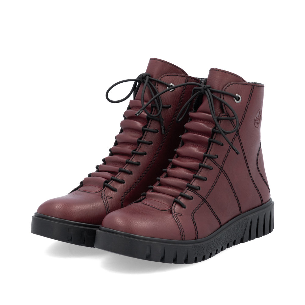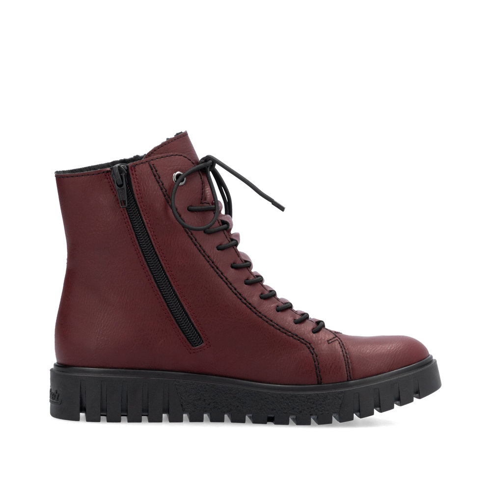 Dámské kotníkové boty Rieker Y3420-36 ve vínové barvě jsou stylovým společníkem, který vám dodá pohodlí i eleganci na každém kroku, ať už jste ve městě nebo na cestě do práce. Jejich nápaditý svršek ve vínovém odstínu s kontrastním černým prošíváním přitahuje pozornost a skvěle doplní váš zimní outfit. Díky praktickému zipu na vnitřní straně je obouvání rychlé a pohodlné, zatímco pružné tkaničky zajistí perfektní přizpůsobení noze.
