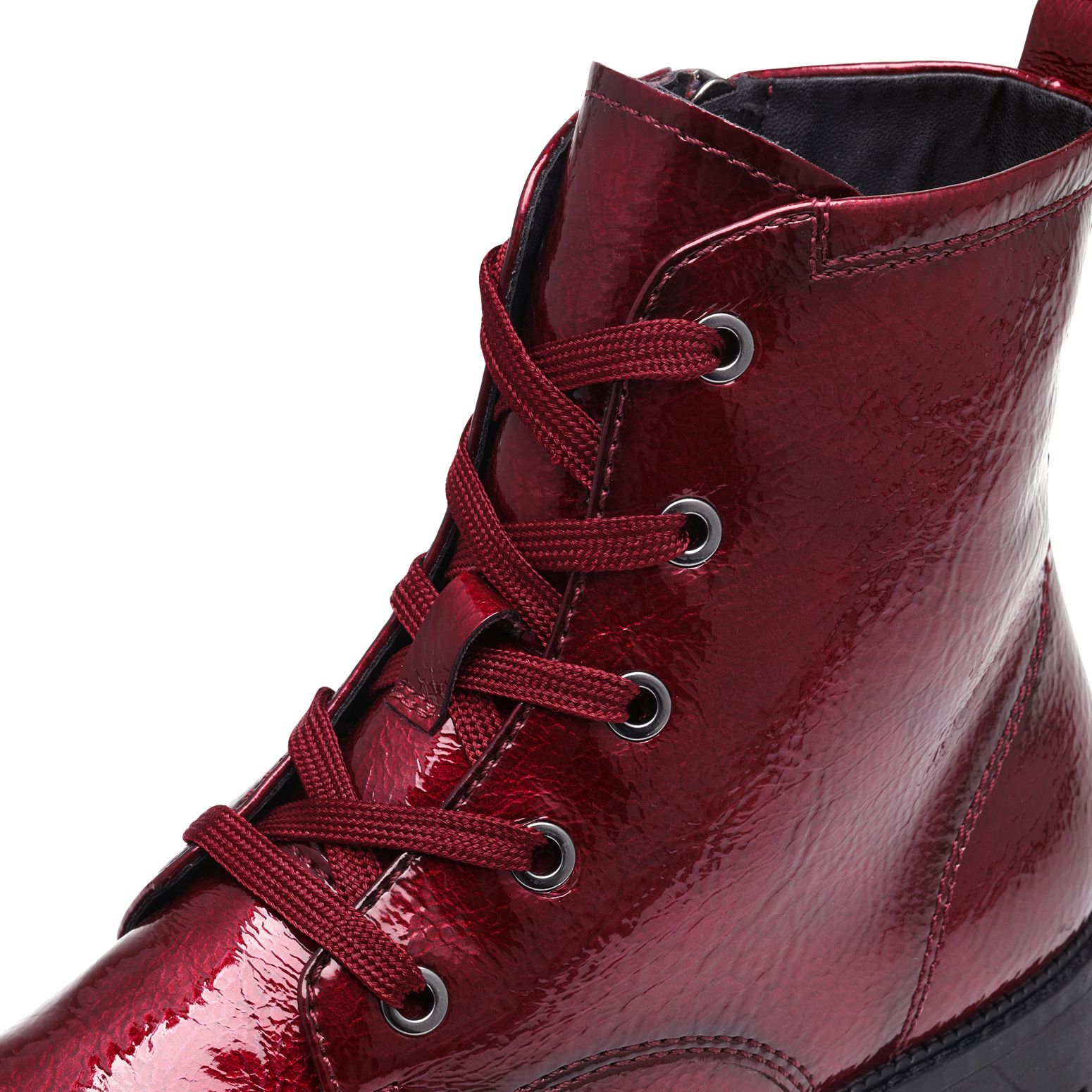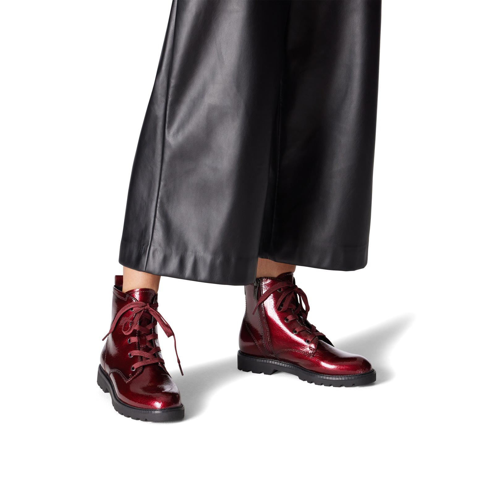 Dámské kotníkové boty Tamaris 1-25261-43 018 ve vínové barvě jsou skvělou volbou pro všechny, kdo hledají pohodlí a styl v jednom. Lesklý povrch bot působí luxusním dojmem a jemné prošití dodává celkovému designu jedinečný nádech. Široký podpatek a hrubá podešev s výrazným vzorkem zajistí stabilitu a pohodlí i na náročnějších površích. Praktické šněrování umožňuje dokonalé přizpůsobení tvaru nohy a zip na vnitřní straně se postará o rychlé a snadné obutí.