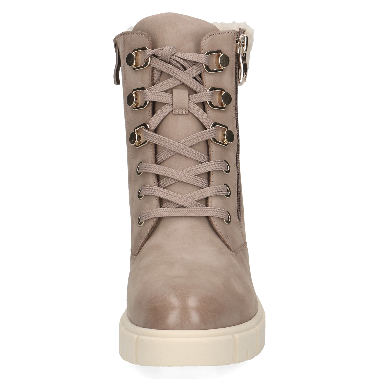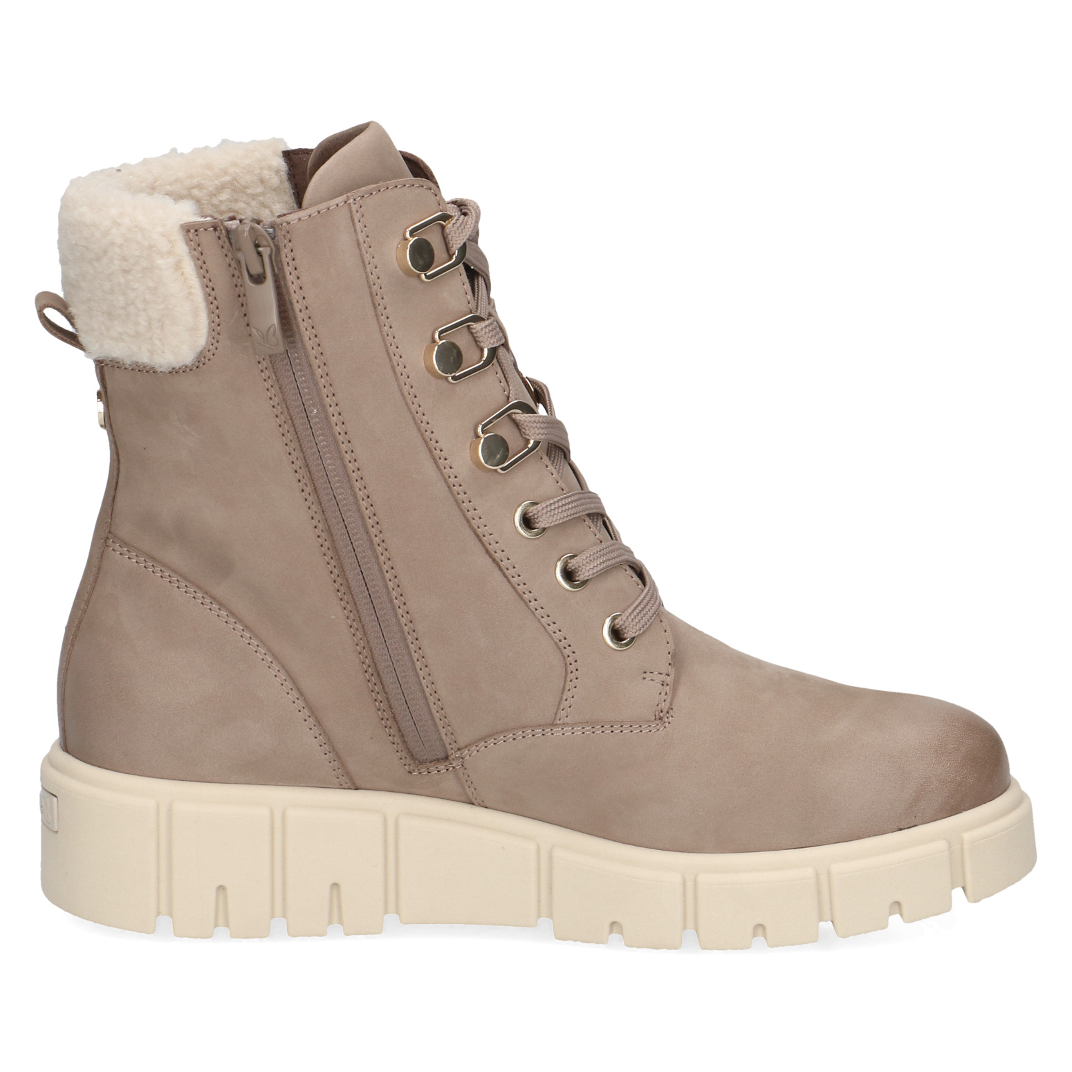 Díky kombinaci šněrování a postranního zipu se boty snadno obouvají a zároveň perfektně přizpůsobí tvaru nohy. Odolná syntetická podešev s výškou 4 cm poskytuje výbornou stabilitu i na kluzkém povrchu.