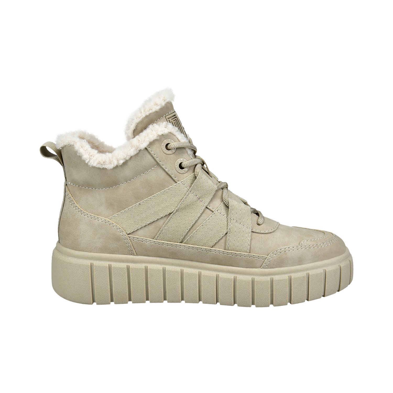 Měkká stélka potažená beránkem a polstrovaný kotníkový lem i jazyk se postarají o maximální pohodlí při každém kroku. Vyšší latexová podešev s protiskluzovým vzorkem poskytuje jistotu a stabilitu na zimním povrchu, přičemž si zachovává moderní vzhled s decentní platformou.