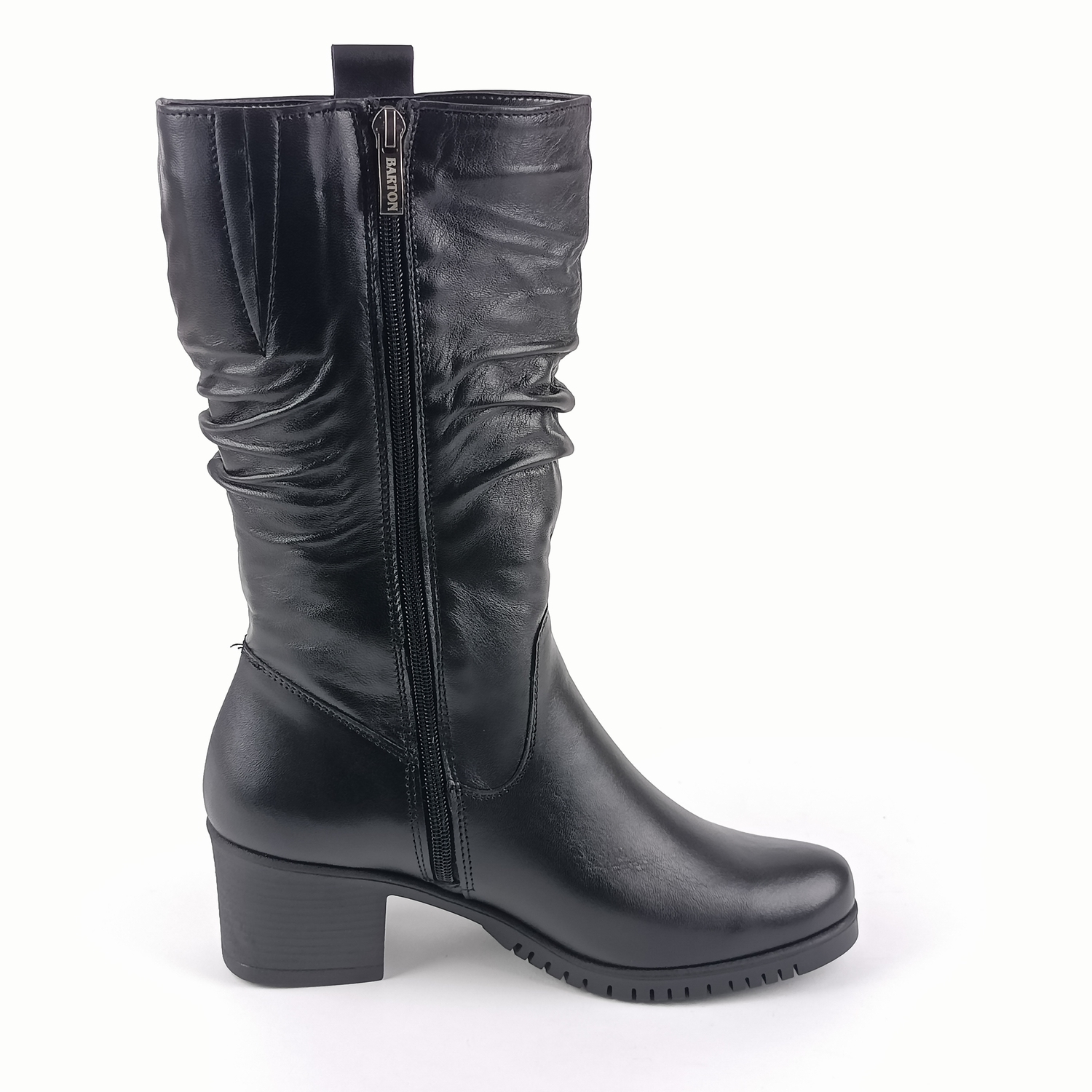 Dámské kozačky Bartoň 9124 v černé barvě představují perfektní kombinaci stylu a pohodlí pro zimní městské dny. Vyrobené z kvalitní hladké kůže, tyto kozačky přináší nadčasový vzhled a spolehlivou ochranu před chladným počasím. Praktický zip a pružná gumička na vnitřní straně boty zaručují snadné obouvání a perfektní přizpůsobení tvaru vaší nohy. Uvnitř najdete hřejivou textilní podšívku, která vás zahřeje i během nejchladnějších zimních dnů. Středně vysoký podpatek (5,5 cm) dodá vašemu kroku eleganci, aniž byste se museli vzdát pohodlí, a poskytne stabilitu na každém kroku díky kvalitní syntetické podešvi.