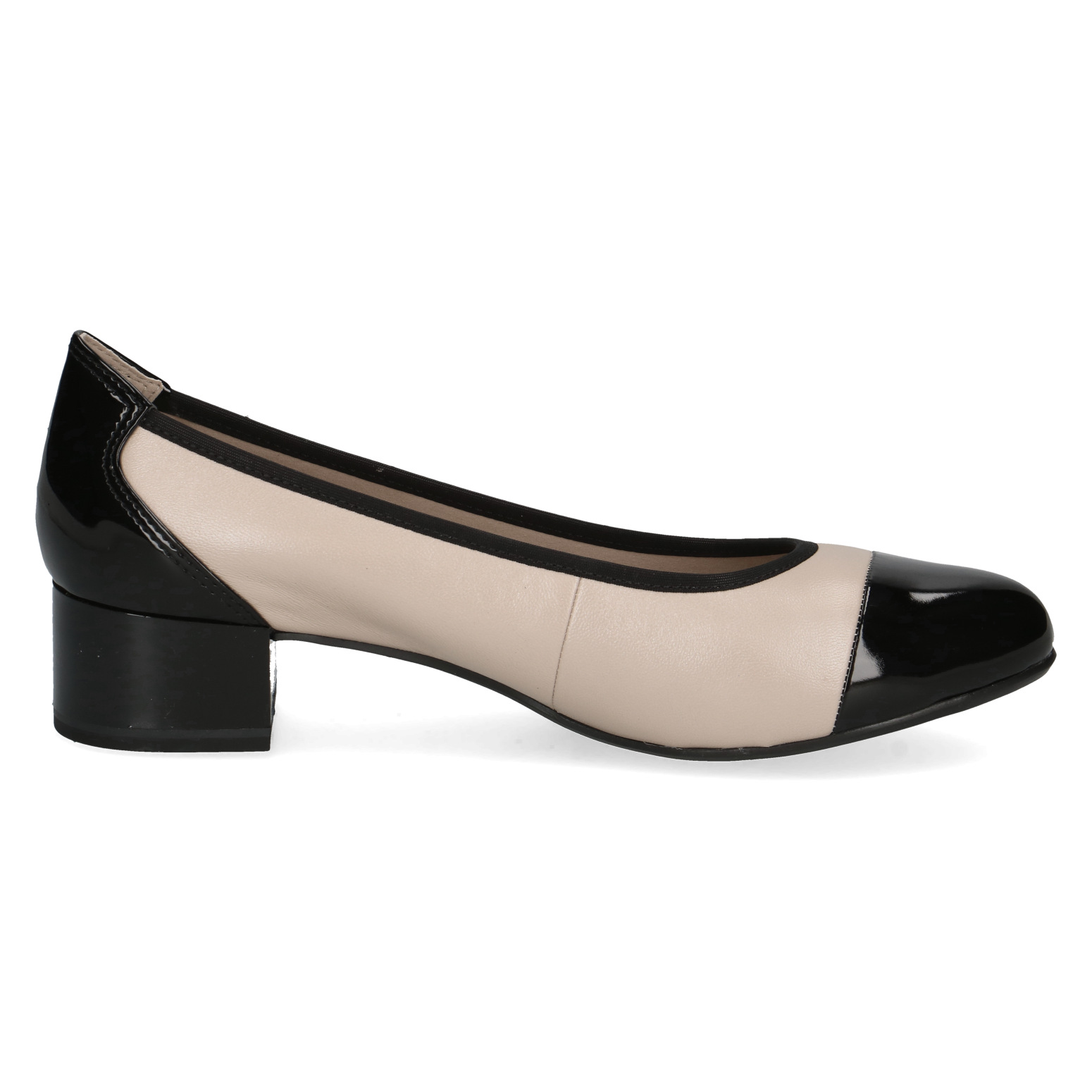 Objevte nadčasovou eleganci a dokonalé pohodlí s dámskými lodičkami Caprice 9-22500-42 408 v béžové barvě s lakovanou černou špičkou a patou. Tento model spojuje sofistikovaný design s maximálním komfortem, ať už je nosíte do práce, na společenské události nebo na procházky městem.