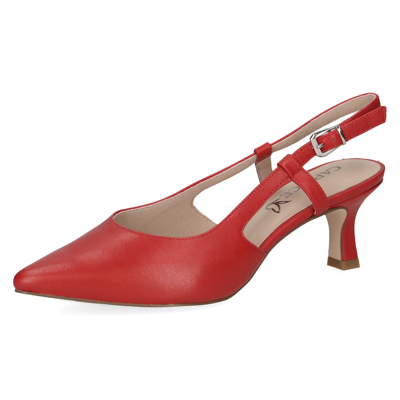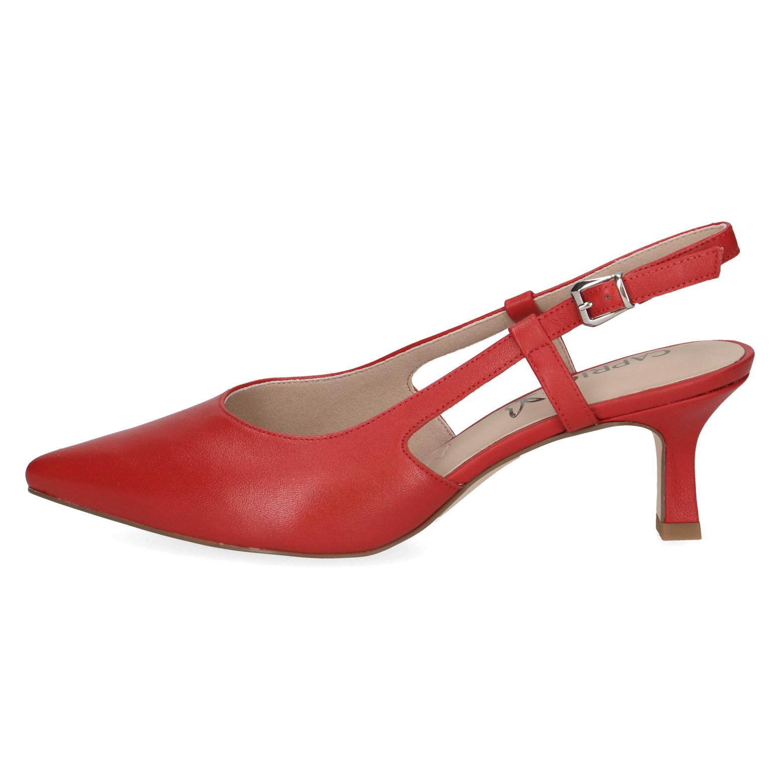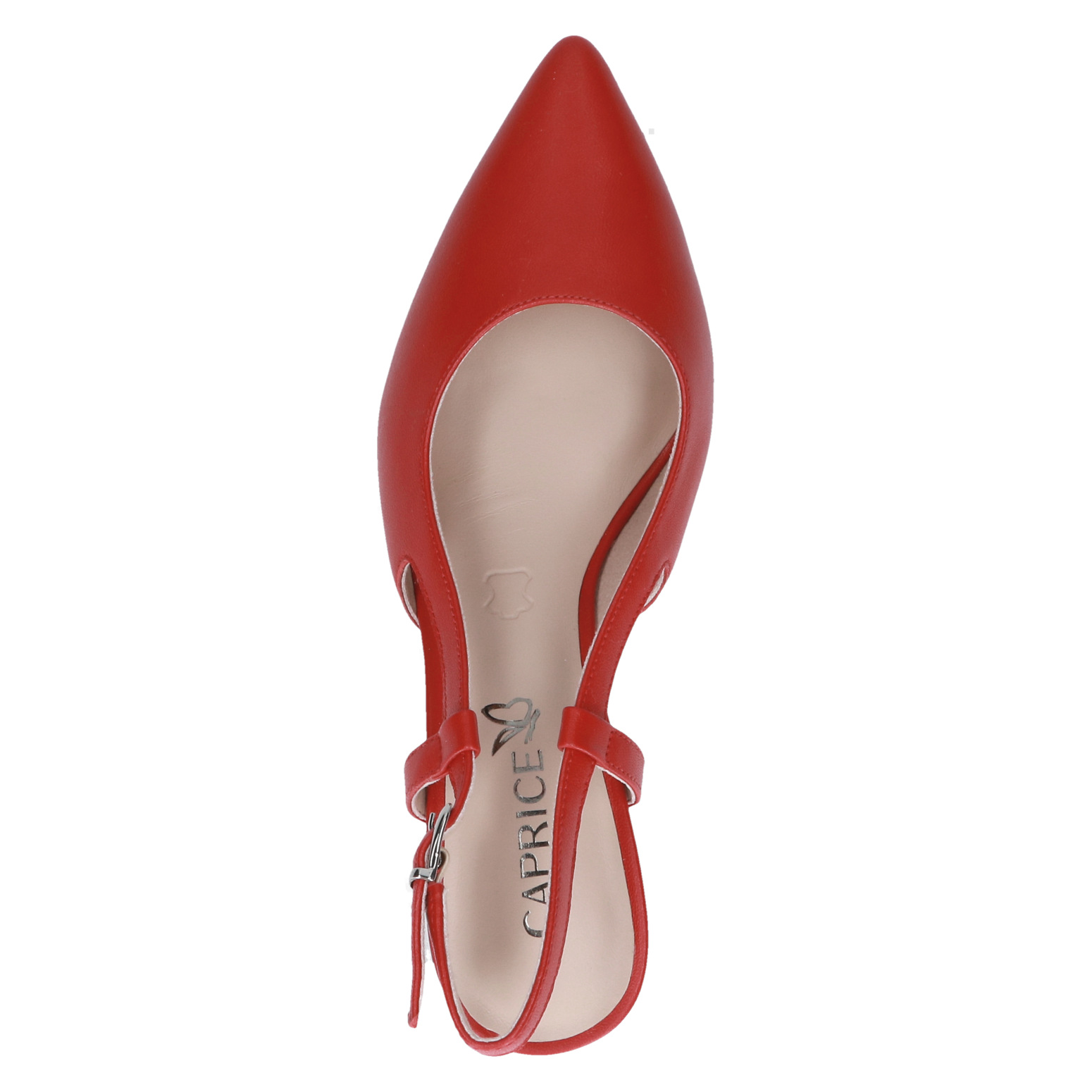 Dámské lodičky Caprice 9-29601-44 501 červené – elegance, ve které zazáříte! Tyto luxusní dámské lodičky s otevřenou patou jsou skvělou volbou pro každou ženu, která chce působit sofistikovaně a vkusně při společenských událostech, plesech i setkáních, vyžadujících elegantní outfit. Hladký kožený svršek v červené barvě dodává obuvi vášnivý a odvážný vzhled, který snadno sladíte s večerními šaty i elegantními kalhotami.