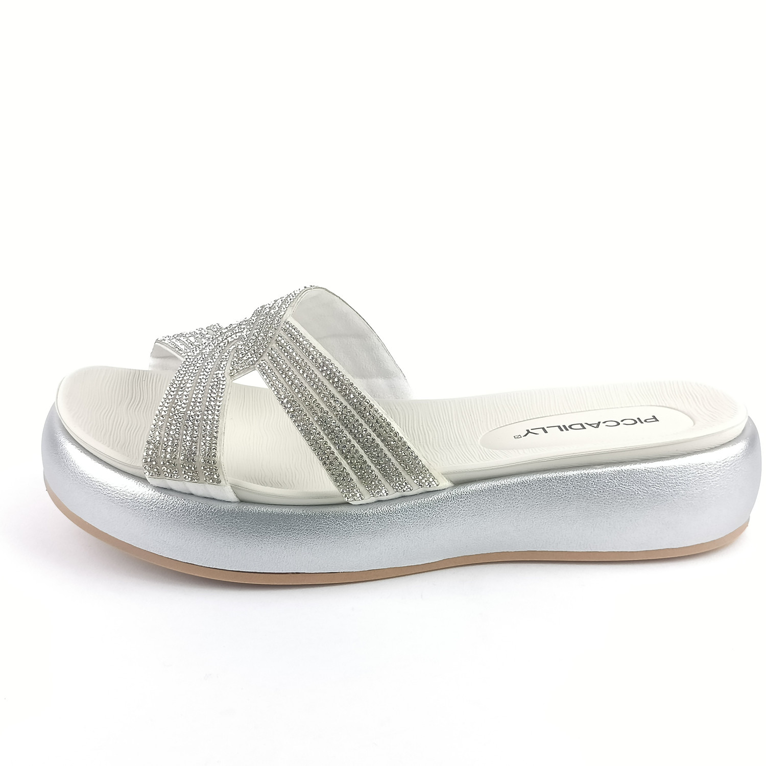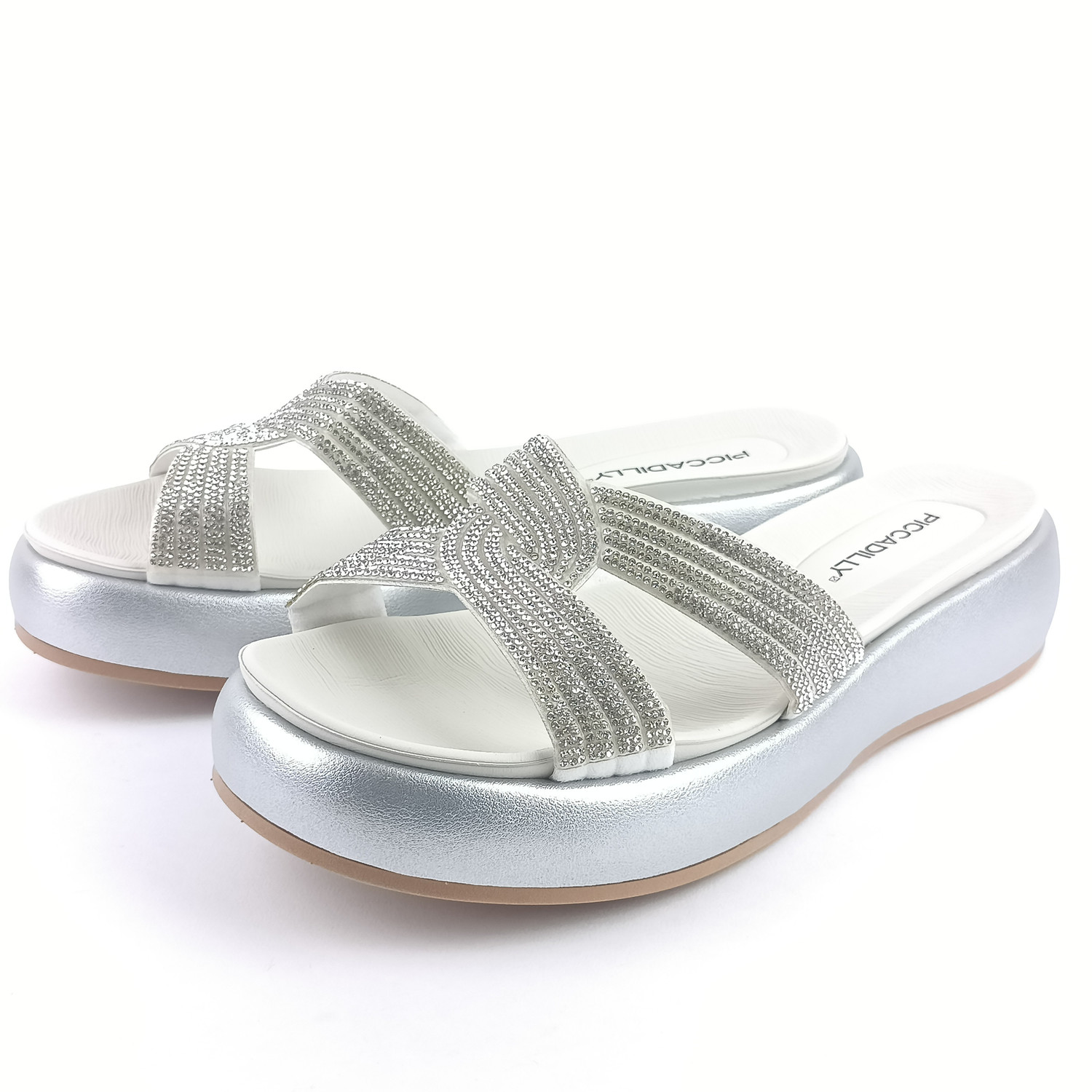 • detail Dámské pantofle na platformě Piccadilly 459008-4 stříbrné