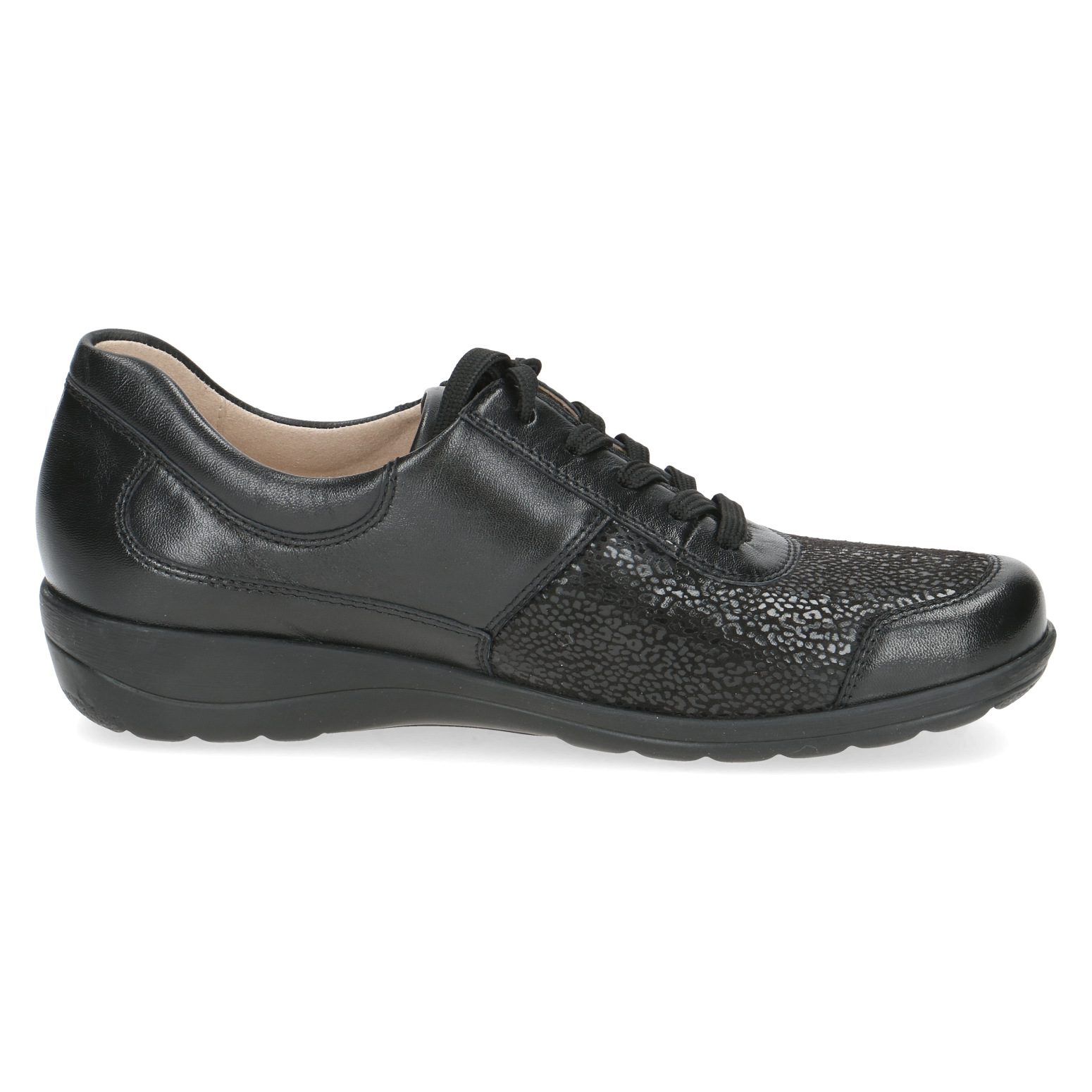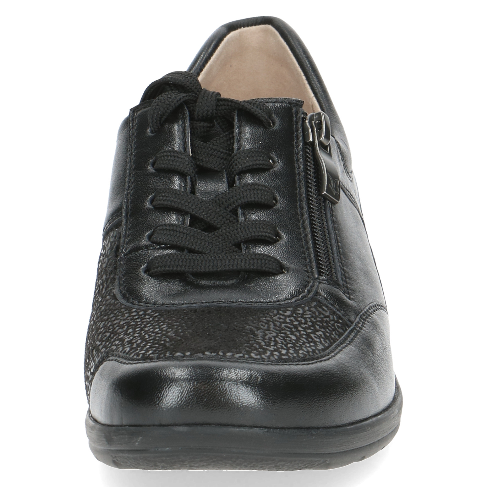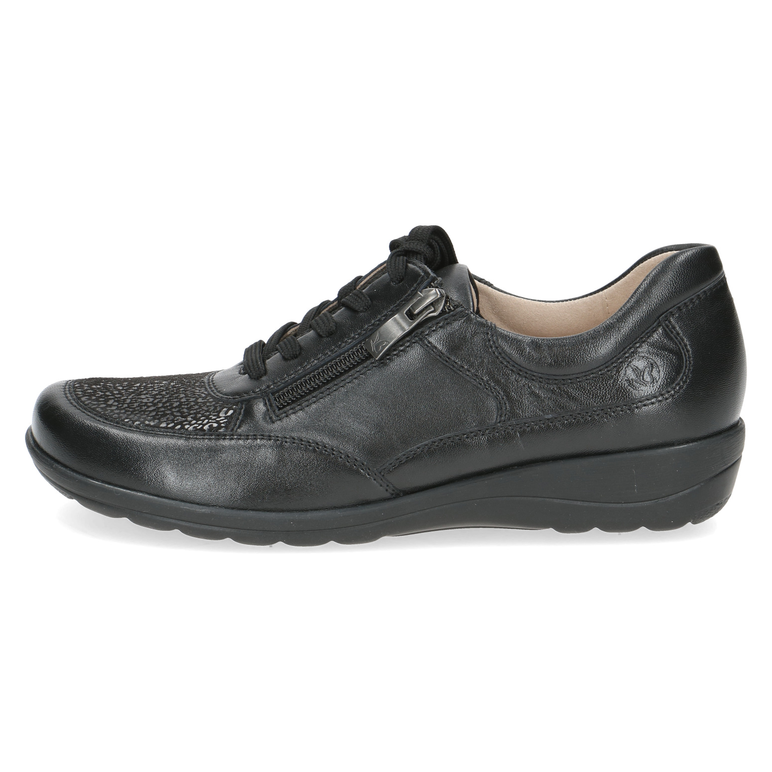 Dámské polobotky Caprice 9-23766-43 019 černé spojují styl, komfort a praktičnost, což z nich dělá ideální volbu pro každodenní nošení ve městě i na volný čas. Kombinace hladké kůže a textilních prvků dodává botám elegantní vzhled, zatímco šířka H zajistí maximální pohodlí i pro širší chodidla.