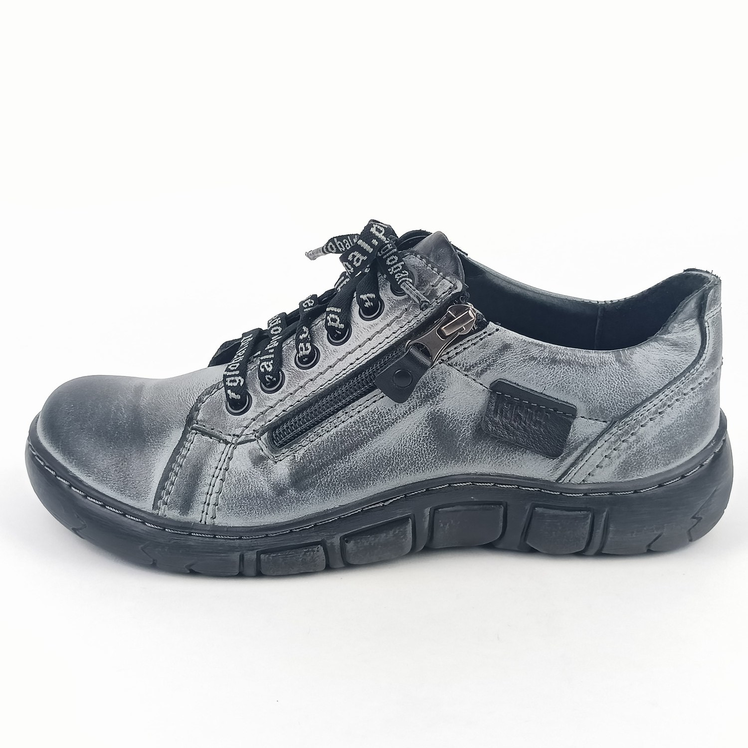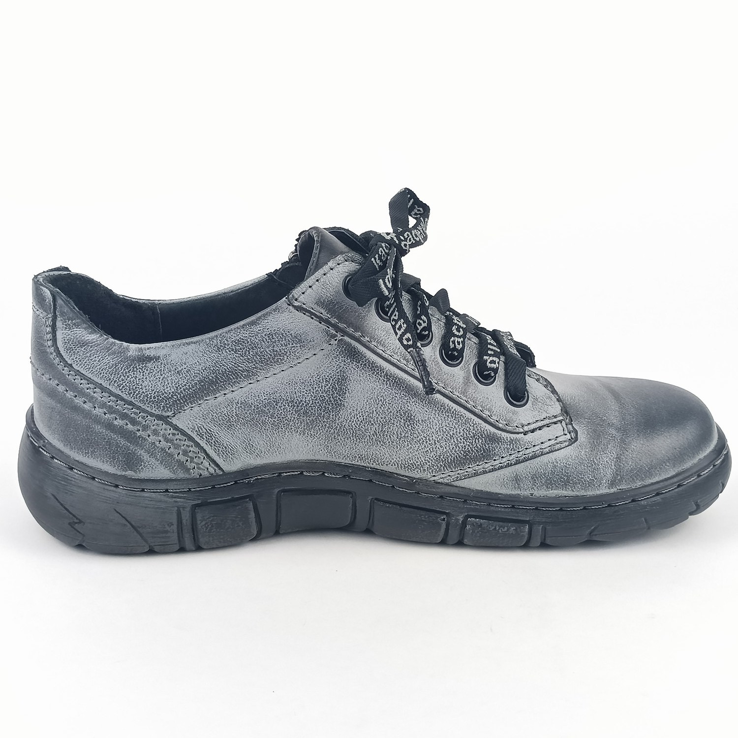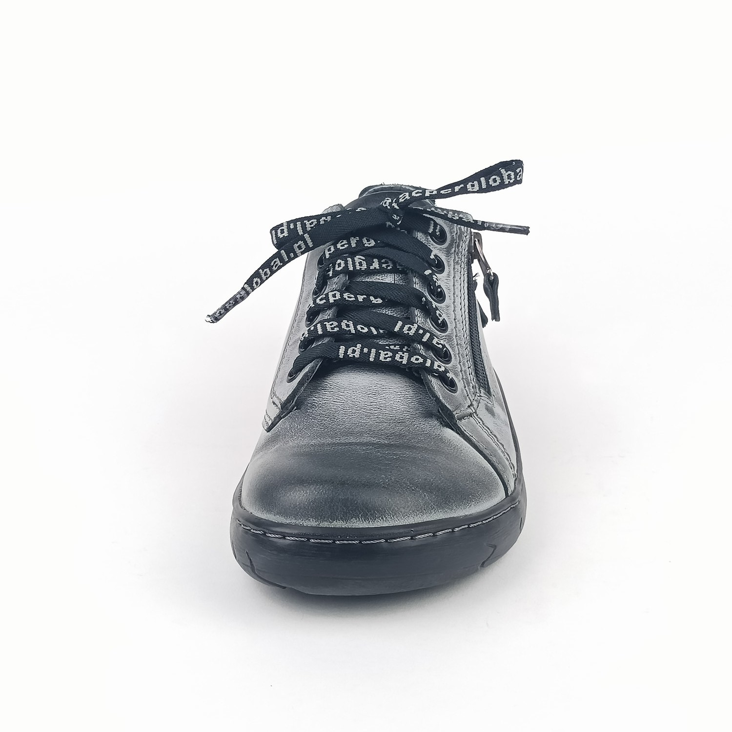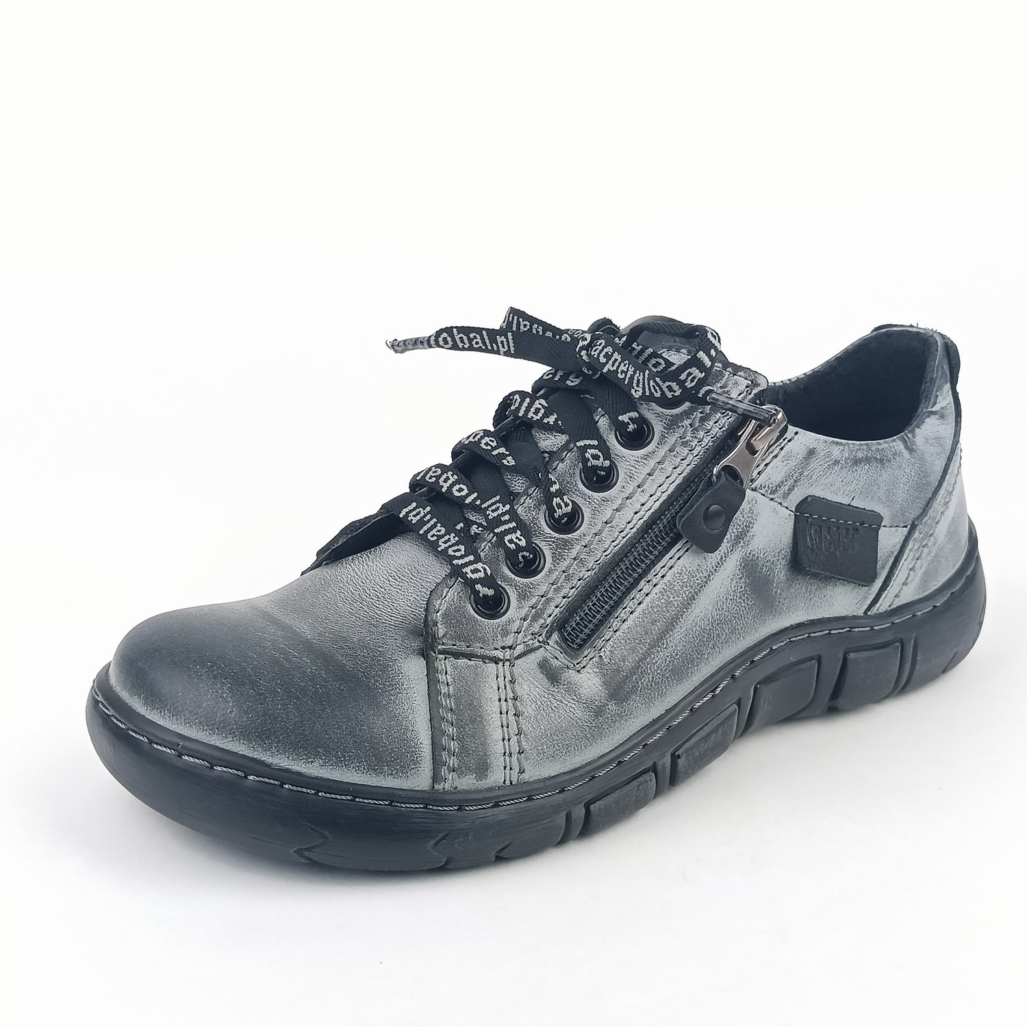 Dámské polobotky Kacper 2-1286 šedé jsou dokonalou volbou pro ženy, které milují pohodlí, jedinečný design a prvotřídní kvalitu. Tato obuv v sobě spojuje precizní řemeslné zpracování, městský styl a praktické detaily, které oceníte při každodenním nošení. Svršek z kvalitní hladké kůže v různých odstínech šedé od světlé po skoro černou dodává botám moderní a univerzální vzhled, který se snadno kombinuje s jakýmkoli outfitem. Šněrování v kombinaci s praktickým zipem na vnější straně umožňuje snadné obouvání a dokonalé přizpůsobení chodidlu.