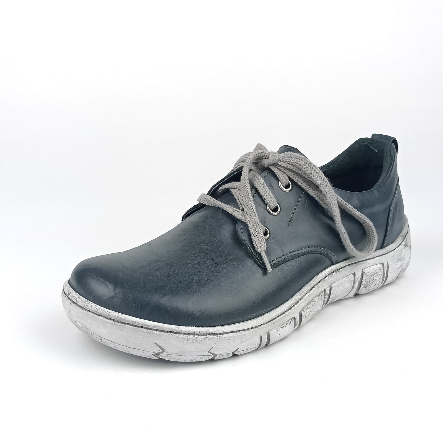 Svršek je vyroben z kvalitní hladké kůže, která je prodyšná, hygienická a přizpůsobuje se tvaru chodidla. Kulatá špička a širší střih H poskytují dostatek prostoru pro prsty, což ocení zejména ženy se širším chodidlem nebo citlivými nohami. Díky klasickému šněrování si boty snadno nastavíte přesně podle potřeby.