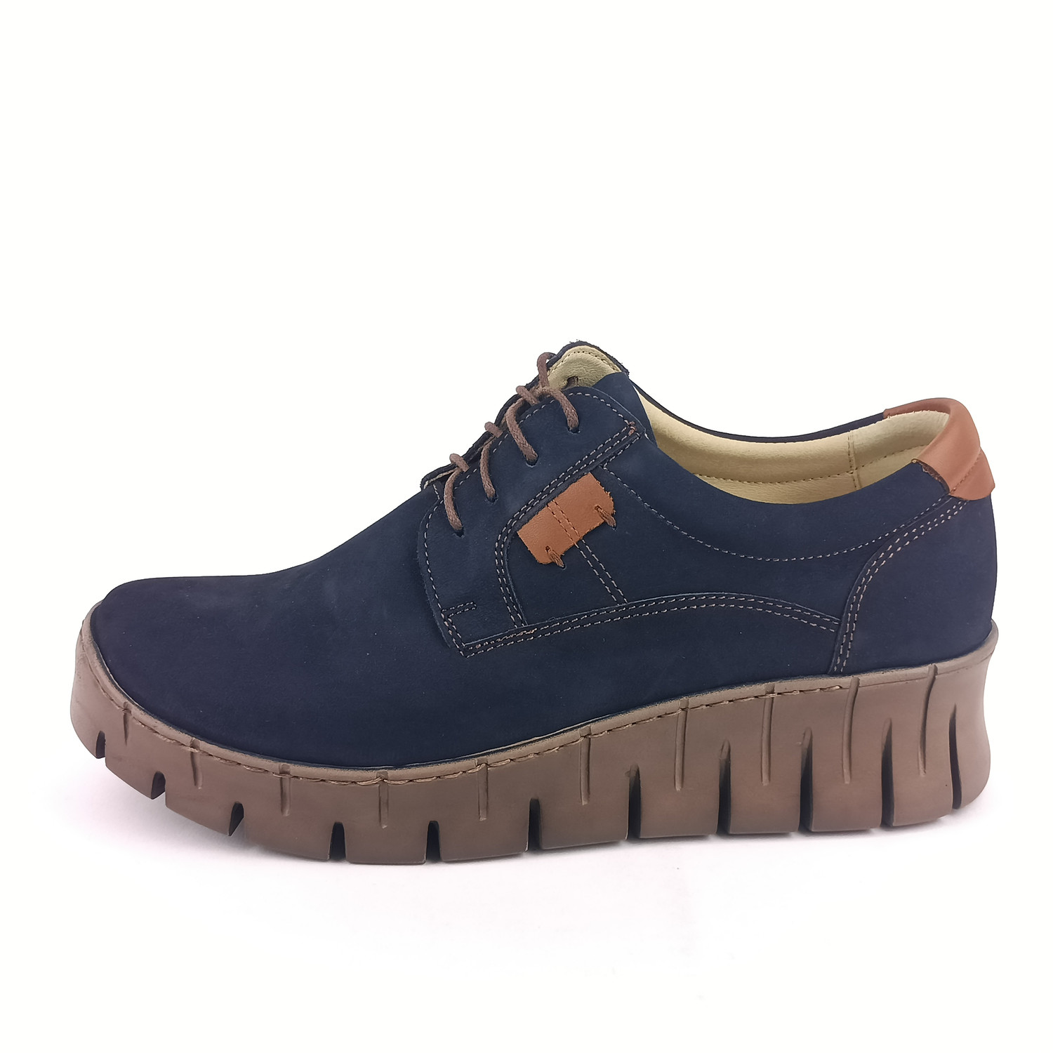 Klasické šněrování umožní snadné obutí i pevné usazení na noze. Díky klínku o výšce 4,5 cm v patní části a 3 cm v přední části získáte příjemné zvýšení bez kompromisů v pohodlí. Podešev je lehká, flexibilní a syntetická, vhodná pro městské prostředí i celodenní nošení.