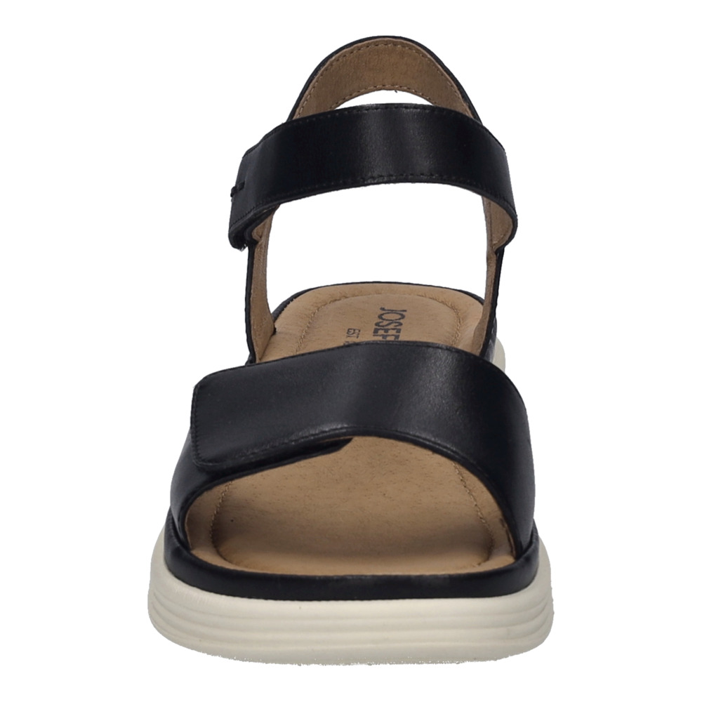 Dámské sandály na klínku Josef Seibel 76401 205 100 černé – letní elegance s pohodlím na prvním místě. Vsaďte na styl, který nezklame, a dopřejte si celodenní komfort v dámských sandálech Josef Seibel 76401 205 100. Tento model v nadčasové černé barvě v sobě spojuje jemnou eleganci, funkční zpracování a kvalitní kožené materiály – ideální pro aktivní letní dny ve městě i mimo něj.