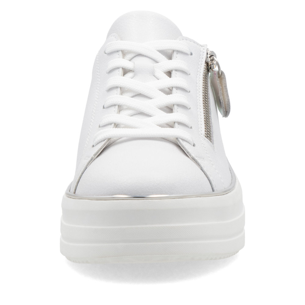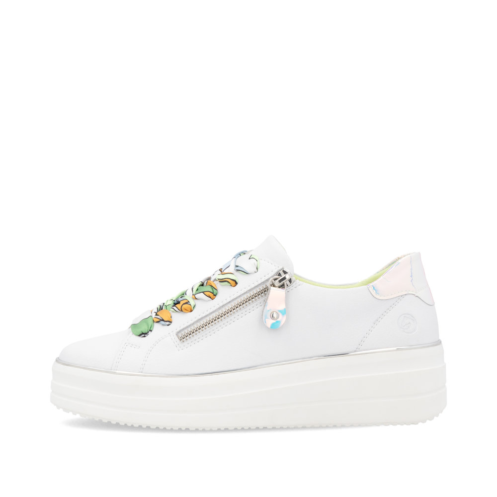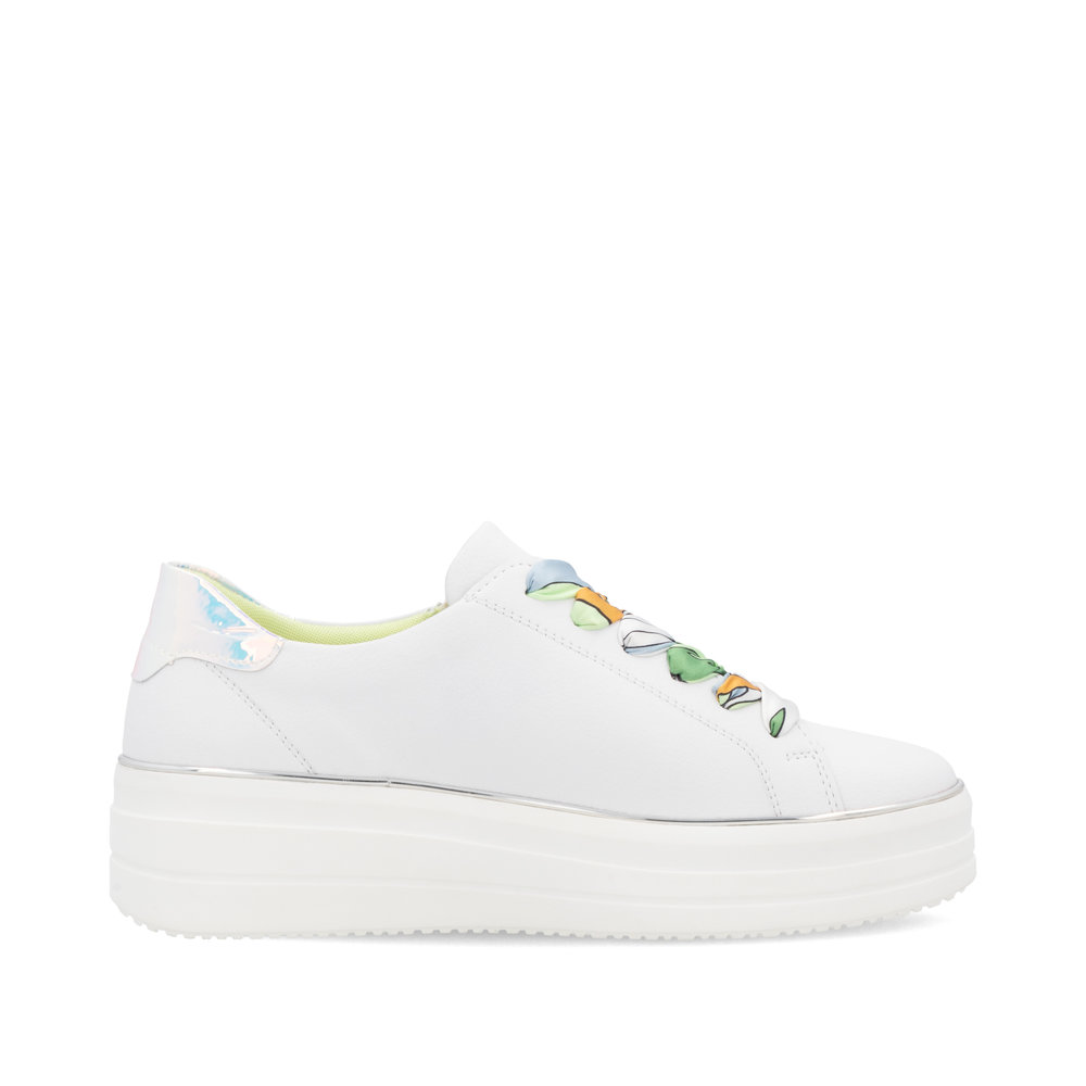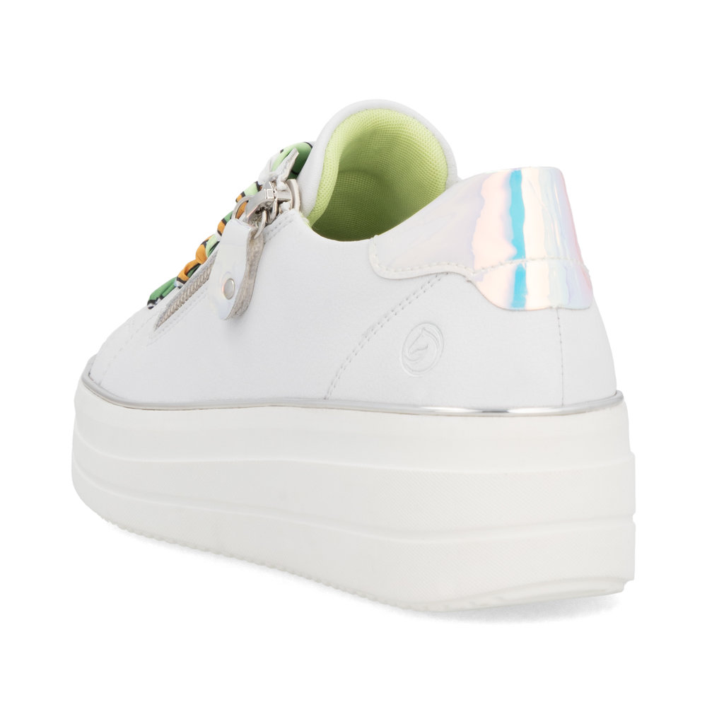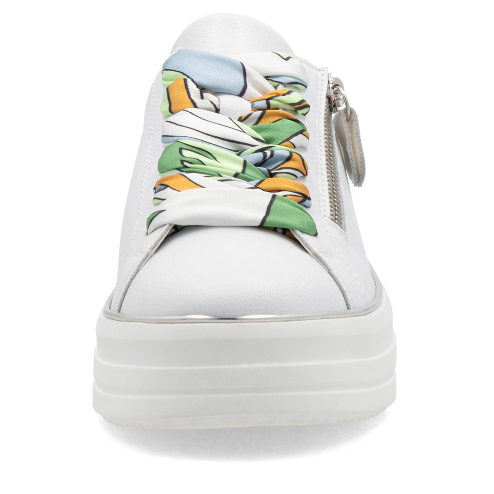 Dámské tenisky Remonte D1C06-80 bílé – Styl, pohodlí a originalita v jednom! Hledáte tenisky, které spojují komfort, moderní vzhled a jedinečné detaily? Dámské tenisky Remonte D1C06-80 jsou tou pravou volbou pro každodenní i volnočasové nošení. Díky čistě bílému koženému svršku a elegantním duhovým akcentům získáte tenisky, které osvěží váš outfit a dodají mu nádech originality.