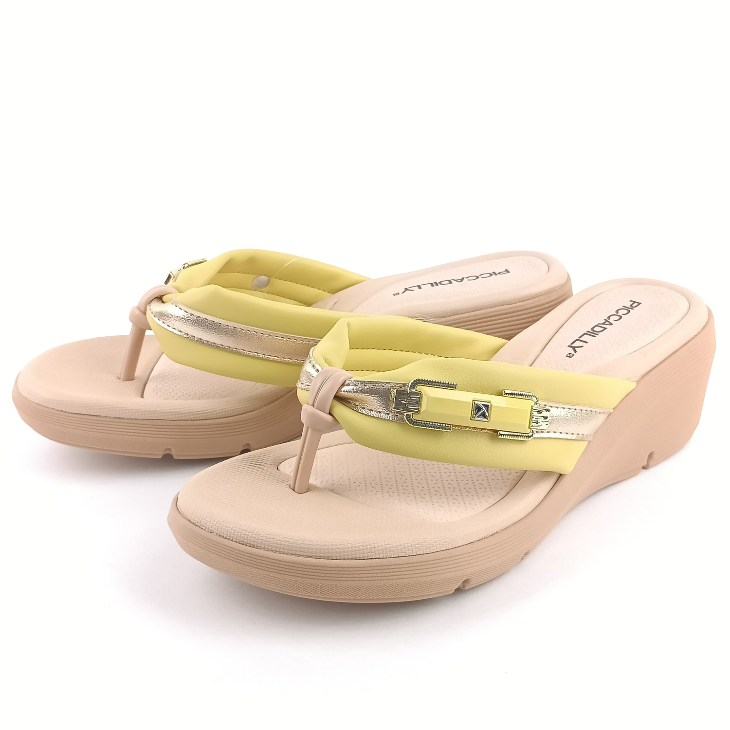 • detail Dámské žabky na klínku Piccadilly 540373-5 žluté