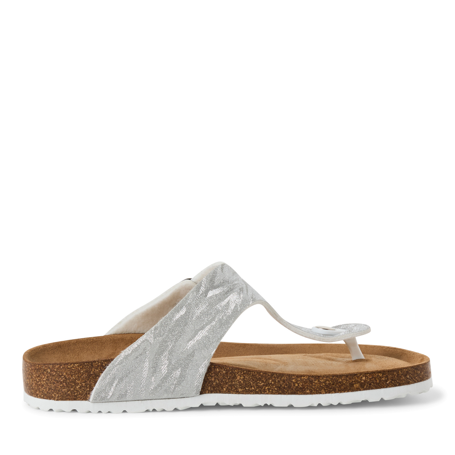 Žabky jsou vybaveny lehkou syntetickou podešví s jemným protiskluzovým vzorkem, která dodává stabilitu a jistotu při chůzi. Vyšší podešev navíc přidává na eleganci a zajišťuje příjemný pocit při nošení. Ať už se chystáte na letní procházky, dovolenou u moře nebo relax na zahradě, tyto stříbrné žabky budou ideálním společníkem.