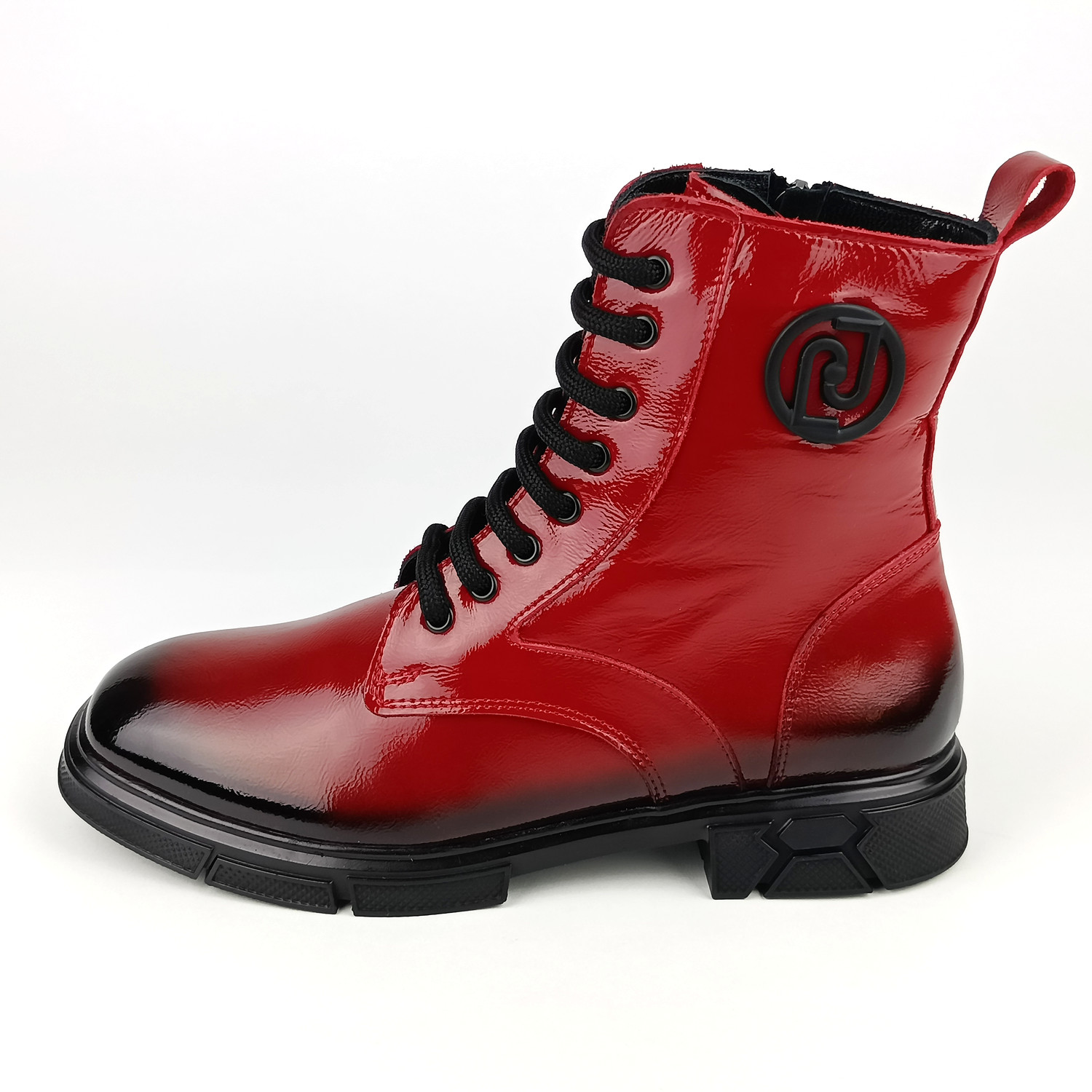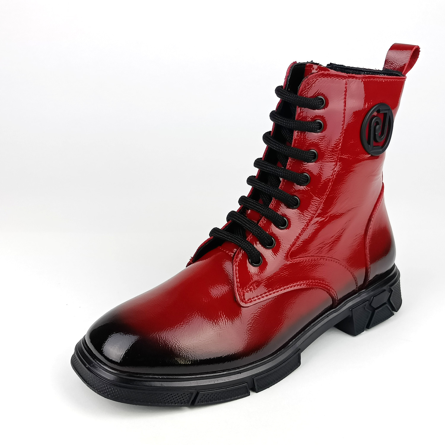 Svršek z pravé lakované kůže přináší luxusní lesk a dlouhou životnost. Kontrastní provedení vytváří moderní městský styl, který perfektně doplní elegantní šaty i jednoduchý ležérní outfit. Na boku bot najdete stylové plastické logo Guero, jež dodává obuvi originální charakter.