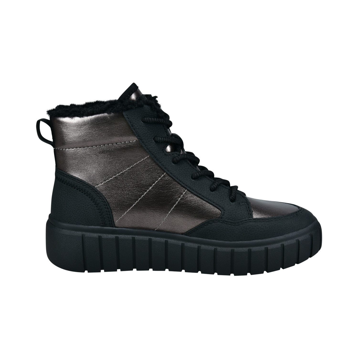 Dámské zimní kotníkové boty Bagatt D31-AMC54-5050 metalické – moderní styl s hřejivým komfortem. Vneste do zimních dnů styl a sebevědomí s dámskými zimními kotníkovými botami Bagatt v atraktivním metalickém provedení. Tento výrazný model kombinuje elegantní černé detaily s jemným leskem kovových tónů, čímž vytváří originální městský look, který si okamžitě zamilujete.