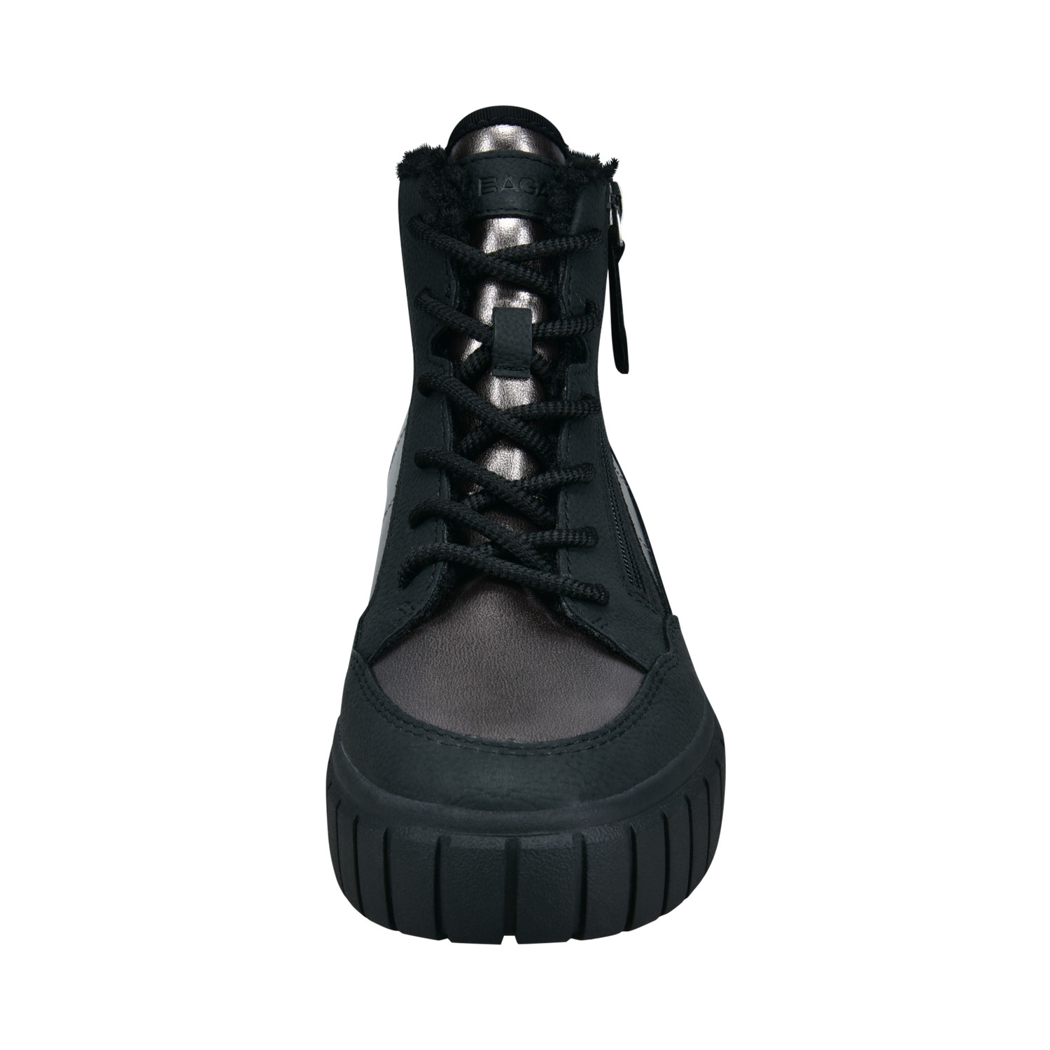 Svršek z kvalitní syntetiky s metalickým efektem působí moderně a zároveň odolává zimním podmínkám. Kombinace šněrování a praktického zipu zajišťuje snadné nazouvání a perfektní přizpůsobení noze. Styl doplňuje decentní značení TT.BAGATT, které podtrhuje exkluzivní charakter obuvi.