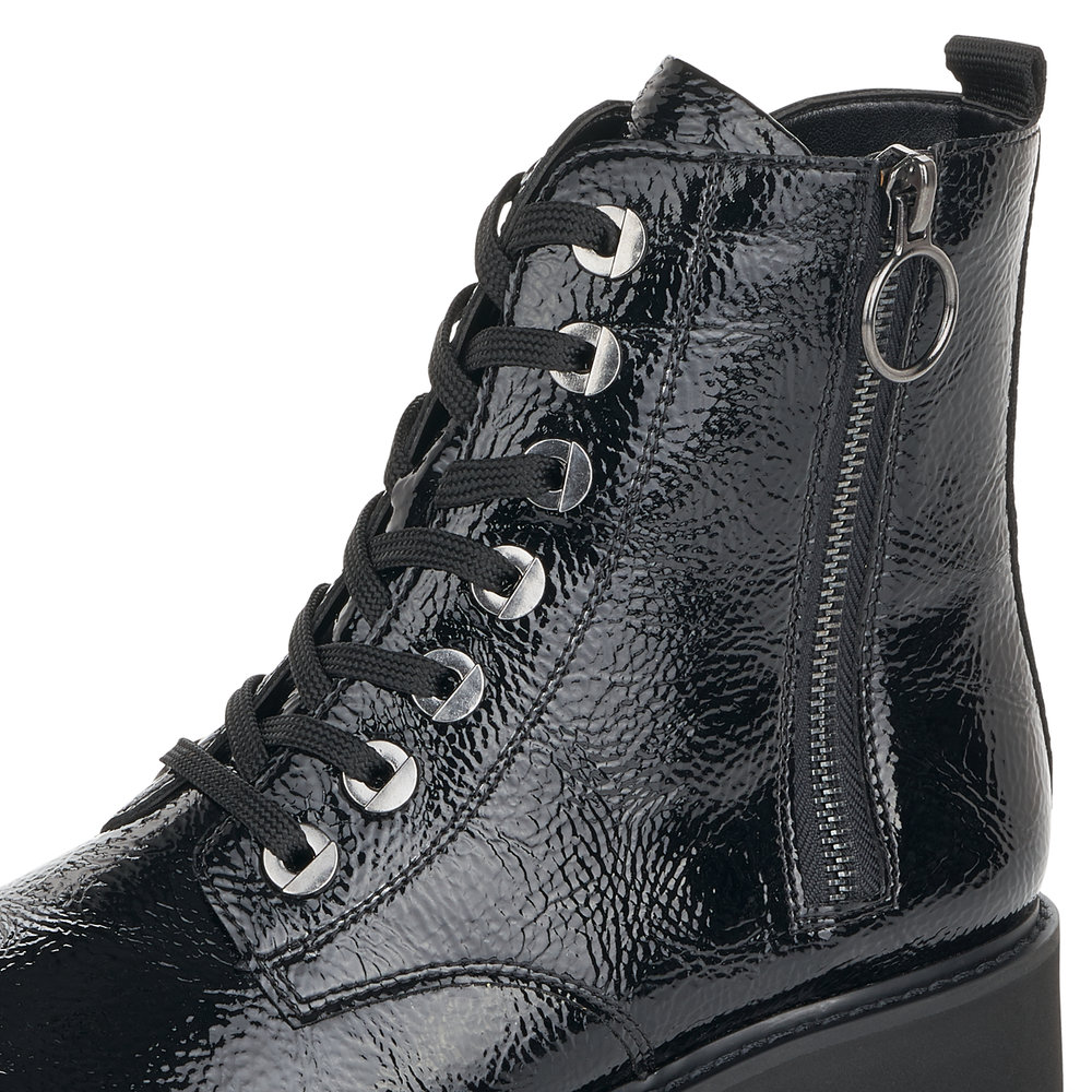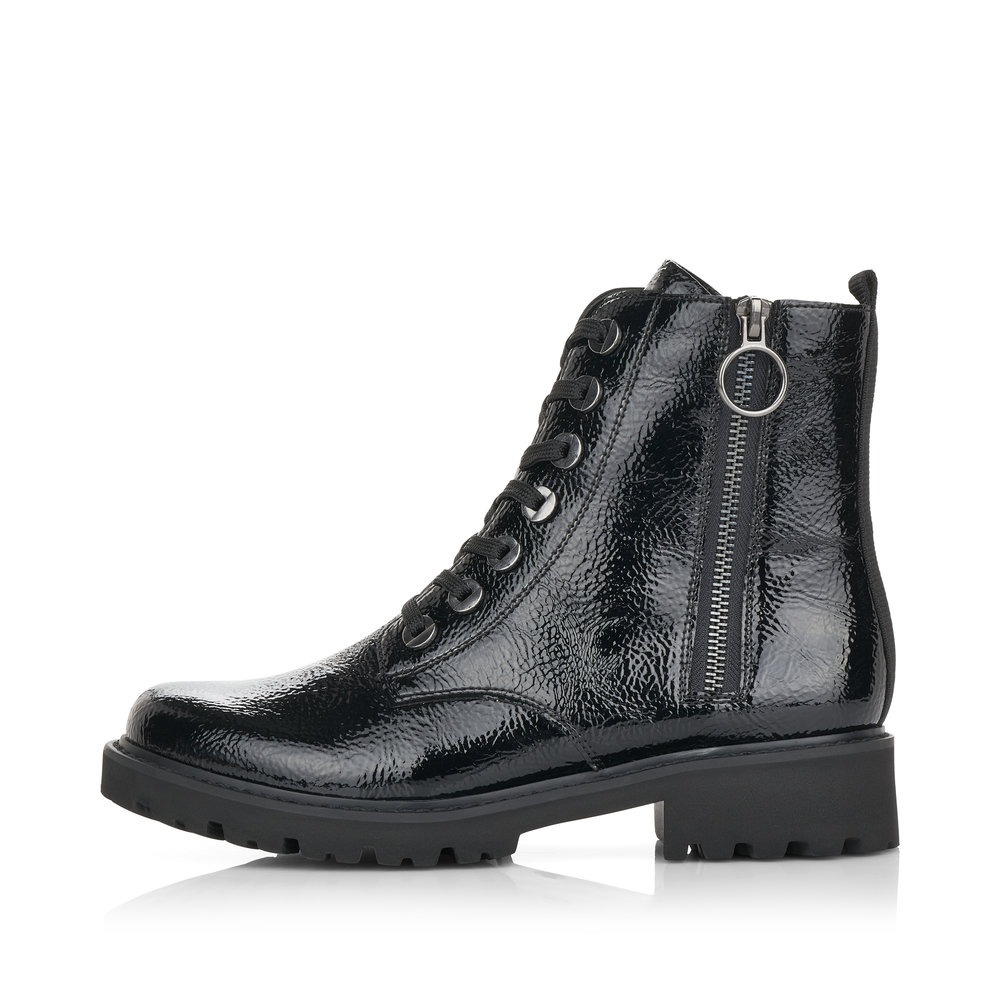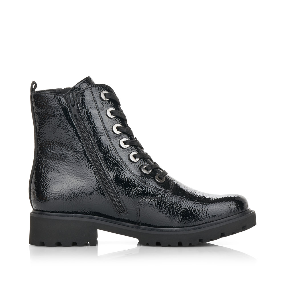 Dámské zimní kotníkové boty Remonte D8671-02 v elegantním černém odstínu představují spojení stylu, kvality a komfortu, které vás bude provázet každým krokem. Vyrobené z hladké kůže s výraznými kovovými detaily a ozdobným zipem na vnější straně, tyto boty skvěle doplní váš zimní outfit. Pohodlí při nošení zaručuje měkká vyjímatelná stélka a praktická kombinace dvou bočních zipů se šněrováním, které umožňují snadné obouvání i dokonalé přizpůsobení kotníku.