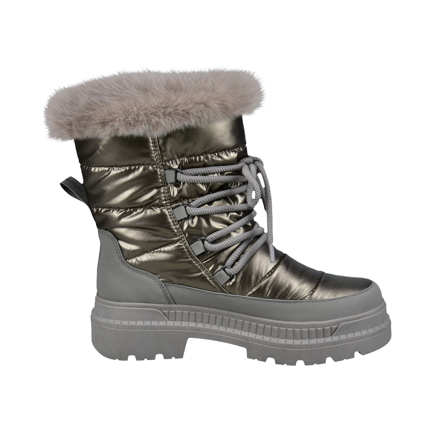 Uvnitř vás zahřeje měkká podšívka z hebké umělé kožešiny, která pokrývá i měkčenou stélku – ideální volba pro chladné dny. Výrazná robustní podešev s hrubým vzorkem a výškou platformy 4 cm zajistí dokonalou přilnavost a stabilitu i na kluzkém povrchu. Výška boty 19 cm vás navíc příjemně ochrání i při hlubším sněhu.