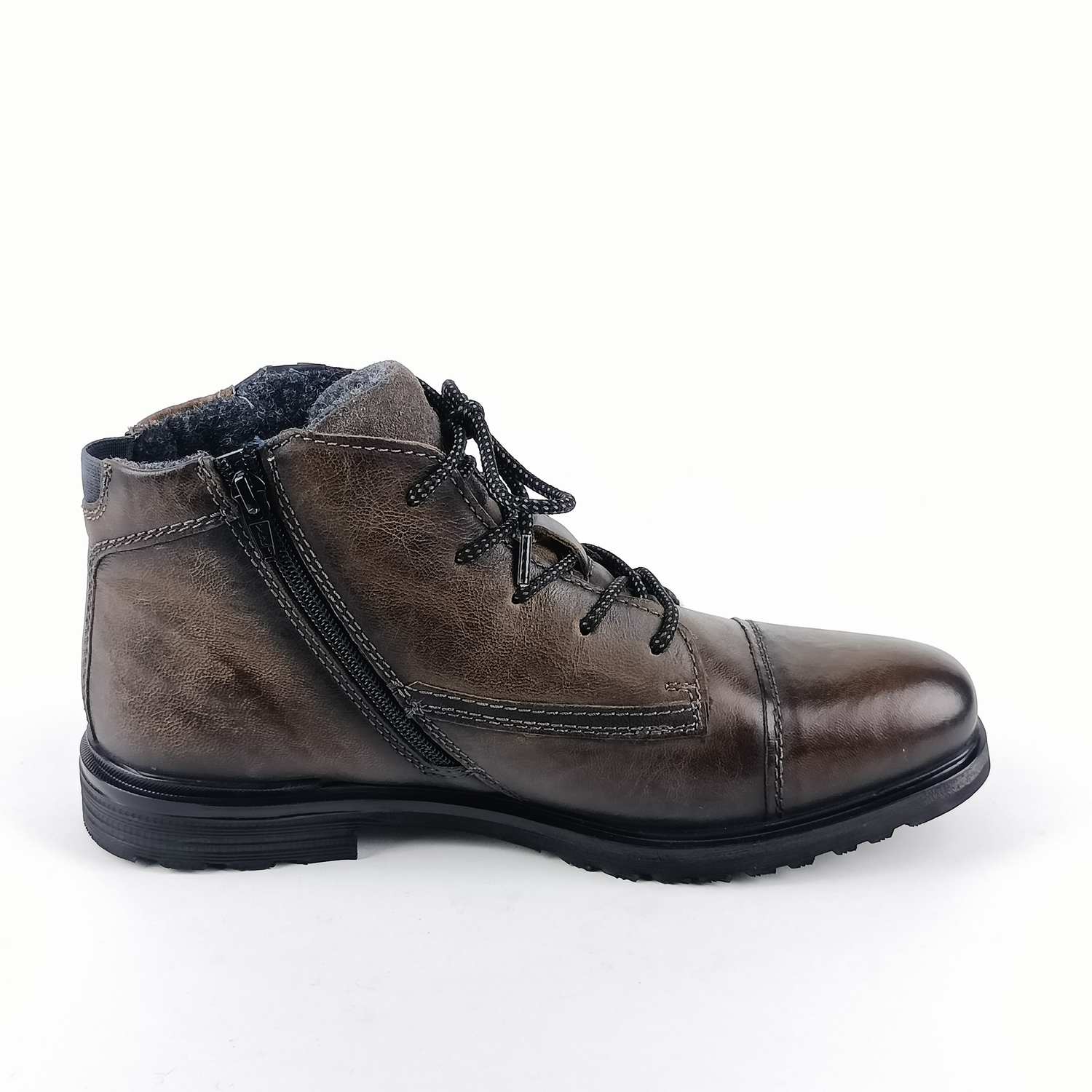Dopřejte si eleganci a komfort s pánskými kotníkovými botami Bugatti, které vás okouzlí nejen svým nadčasovým designem, ale i praktickými detaily pro každodenní zimní nošení. Svršek z kvalitní, přirozeně strukturované kůže v tmavém hnědém odstínu se stylovým stínováním dodává těmto botám unikátní a moderní vzhled. Kombinace klasického šněrování a praktického postranního zipu vám umožní snadné obutí i přizpůsobení boty noze, zatímco ozdobný zip s gumovou légou na vnější straně podtrhuje jejich jedinečný styl.