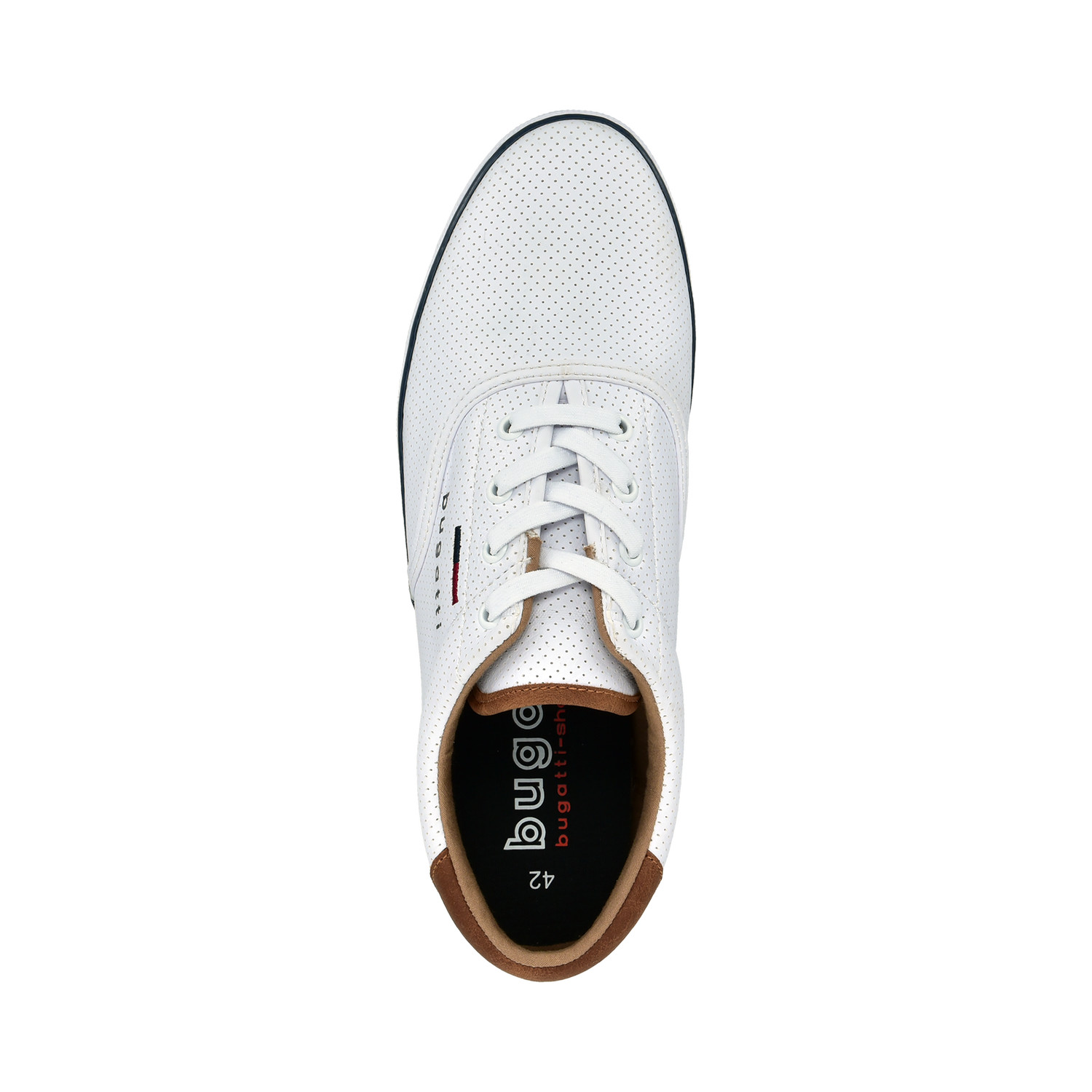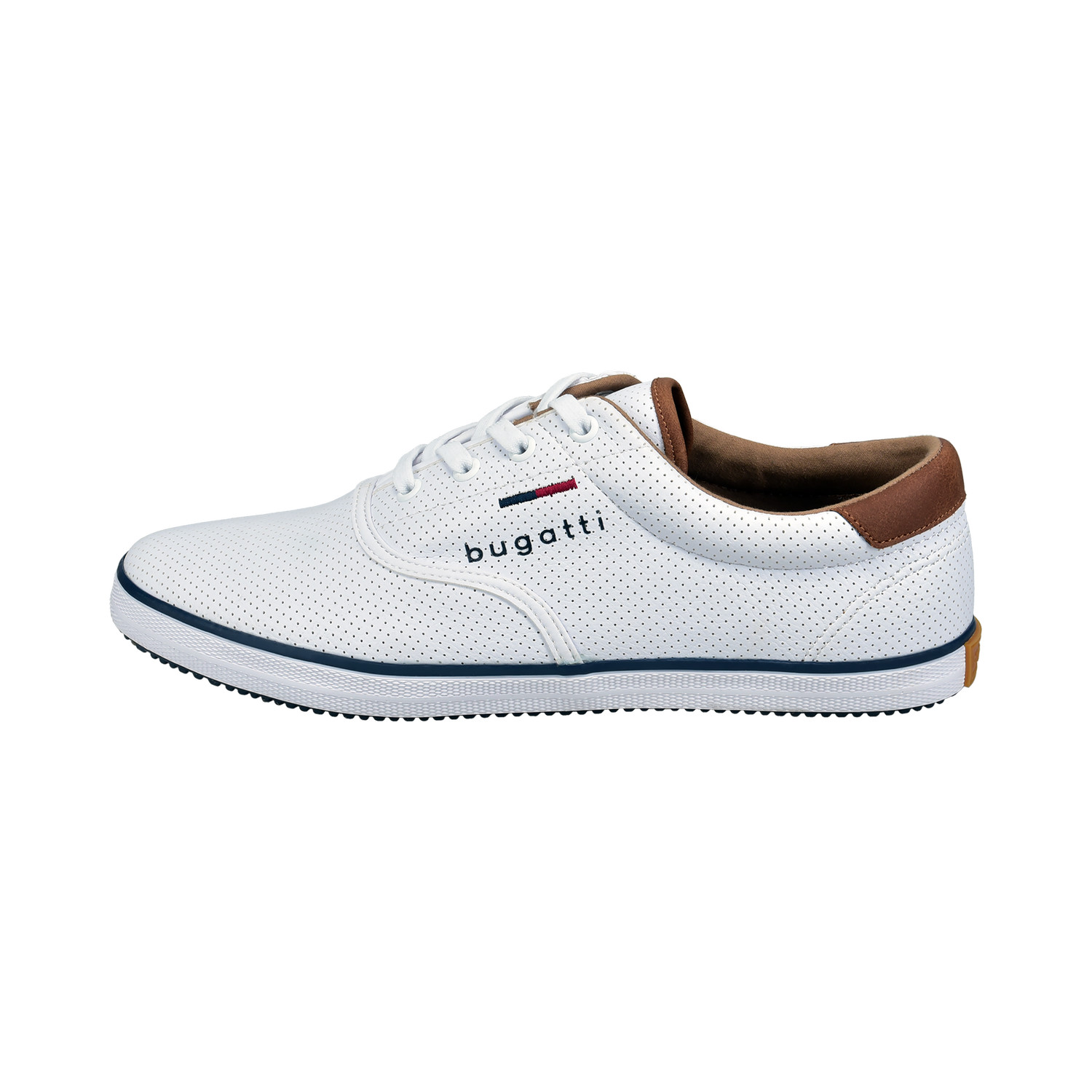 Pánské tenisky Bugatti 321-AFH01-5000 bílé – Městský styl v moderním a zodpovědném pojetí. Vstupte do nové sezóny s lehkostí a sebevědomím díky pánským teniskám Bugatti 321-AFH01-5000 v elegantní bílé barvě s kontrastními hnědými a tmavě modrými detaily. Tento stylový model z řady Green Spirit je důkazem, že módní vzhled může jít ruku v ruce s udržitelným přístupem. Tenisky jsou totiž vyrobeny z veganských a recyklovaných materiálů, včetně organické bavlny, a splňují tak požadavky moderního muže nejen na vzhled, ale i hodnoty.